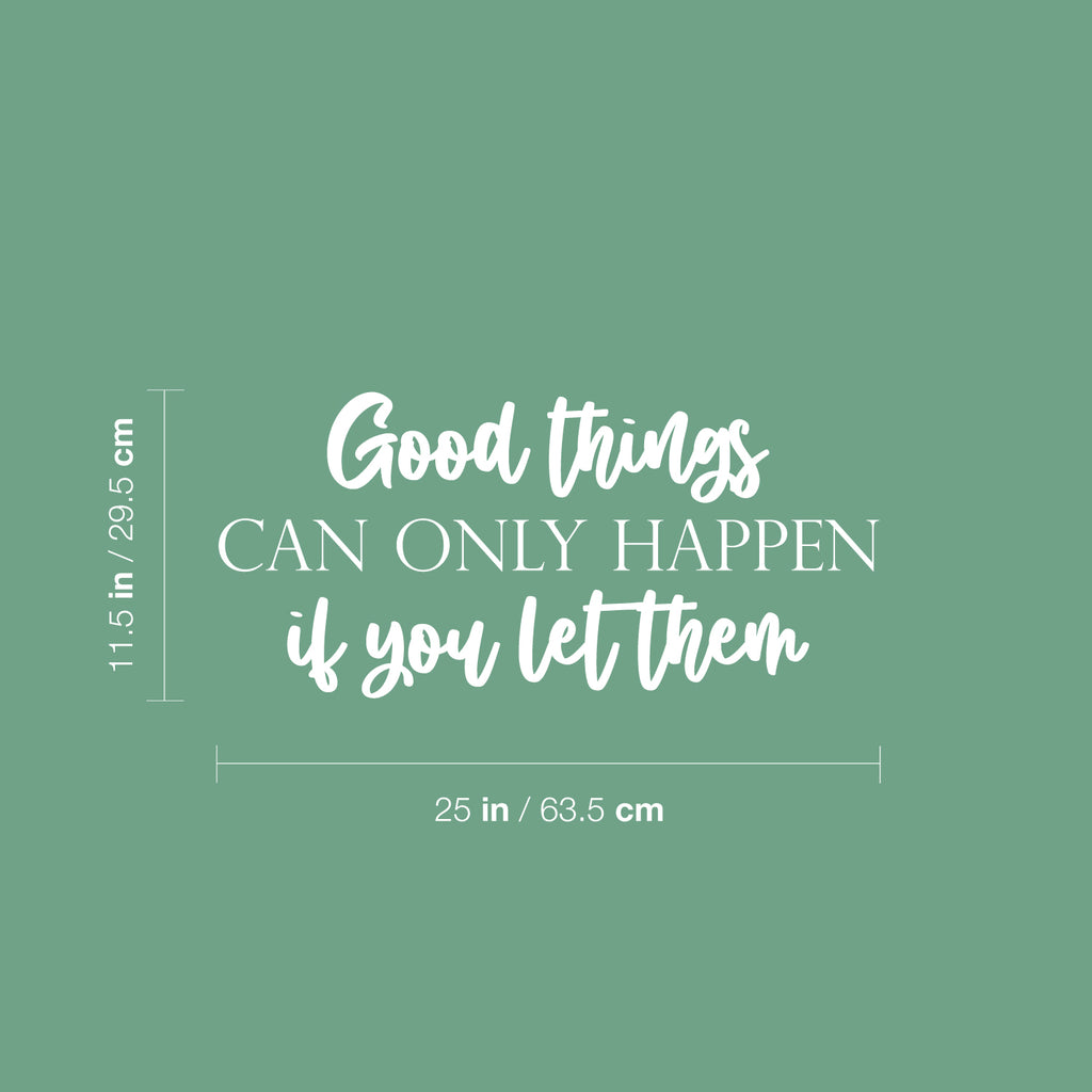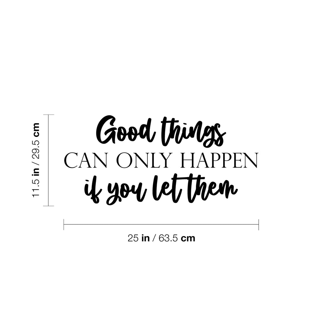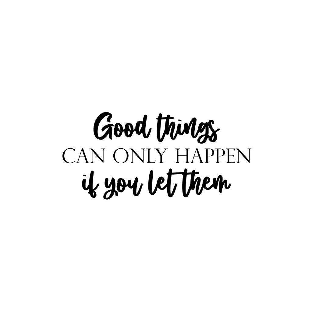This awesome motivational decal quote "Good Things Can Only Happen If You Let Them"; is the perfect touch for your home or office. Use it for your dorm room; home office; living room or anywhere you want to bring some extra cute decoration. It's a vinyl sticker that is easy to put on any smooth and dry surface. Our modern designs don't just brighten up the room; but brighten up the day. Using top of the line vinyl across all of our production allows us to be the leaders in quality and design.