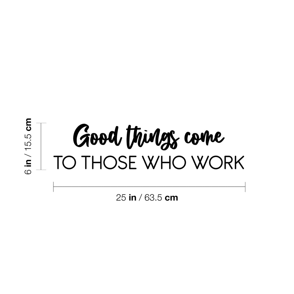 This awesome positive decal quote "Good Things Come To Those Who Work"; is the perfect touch for your home or office. Use it for your living rom; school; coffee shop or anywhere you want to bring some extra inspiring decoration. It's a vinyl sticker that is easy to put on any smooth and dry surface. Our modern designs don't just brighten up the room; but brighten up the day. Using top of the line vinyl across all of our production allows us to be the leaders in quality and design.