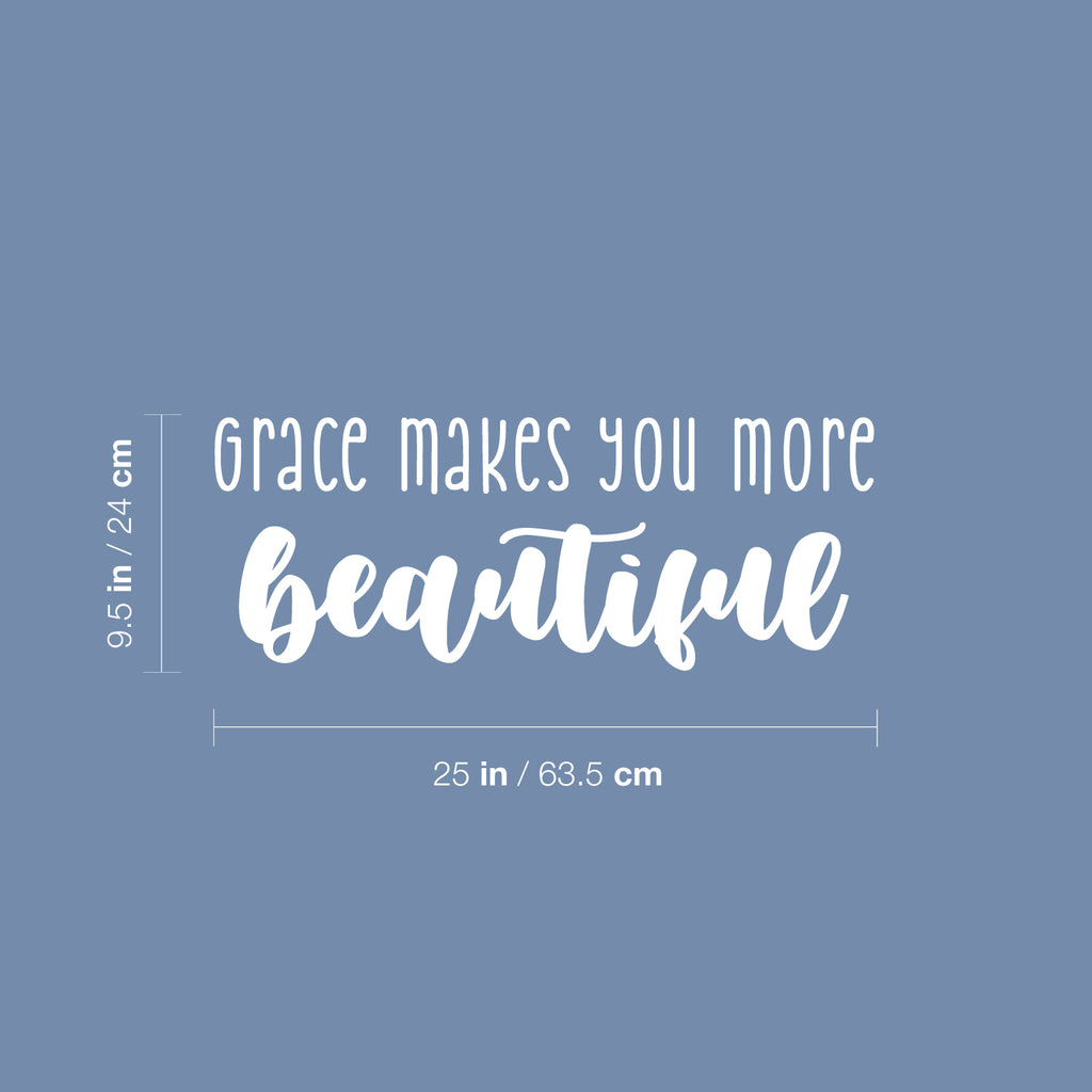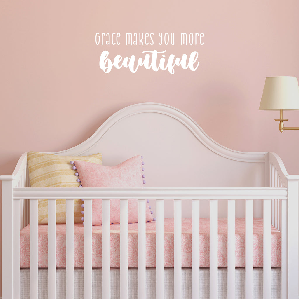 This awesome inspirational decal quote "Grace Makes You More Beautiful" is the perfect touch for your home or school. Use it for your nursery; playroom; kids room or anywhere you want to bring some extra cute decoration. It's a vinyl sticker that is easy to put on any smooth and dry surface. Our modern designs don't just brighten up the room; but brighten up the day. Using top of the line vinyl across all of our production allows us to be the leaders in quality and design.