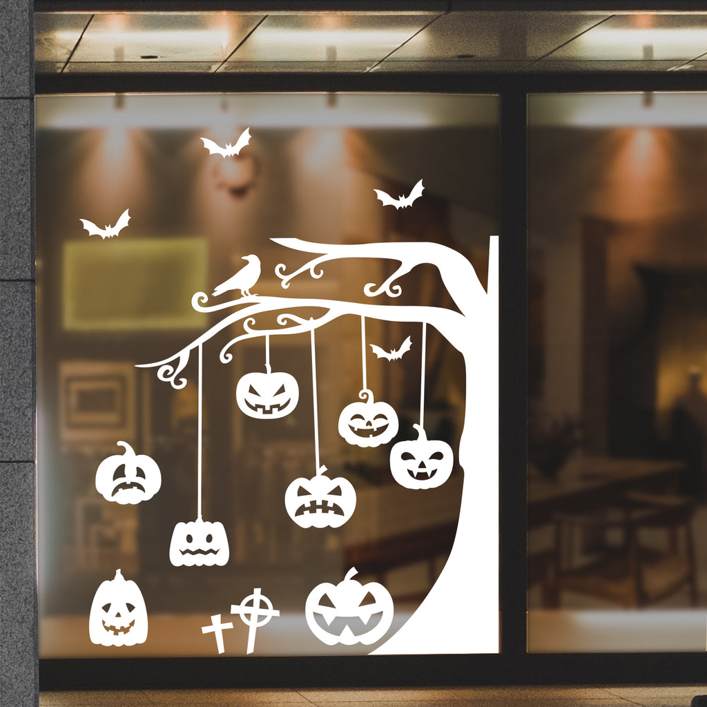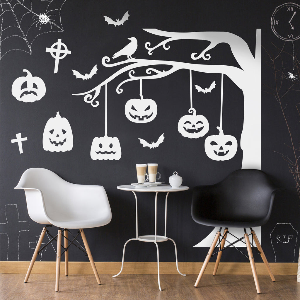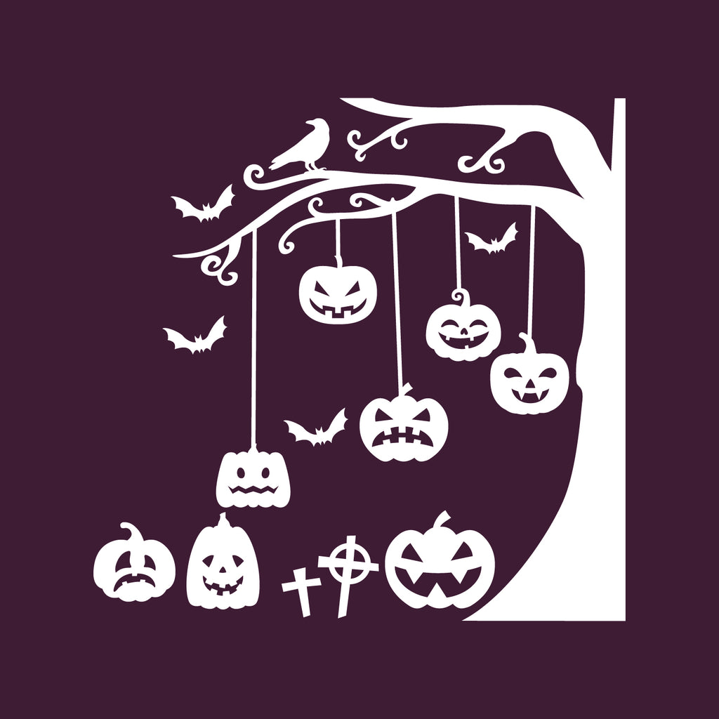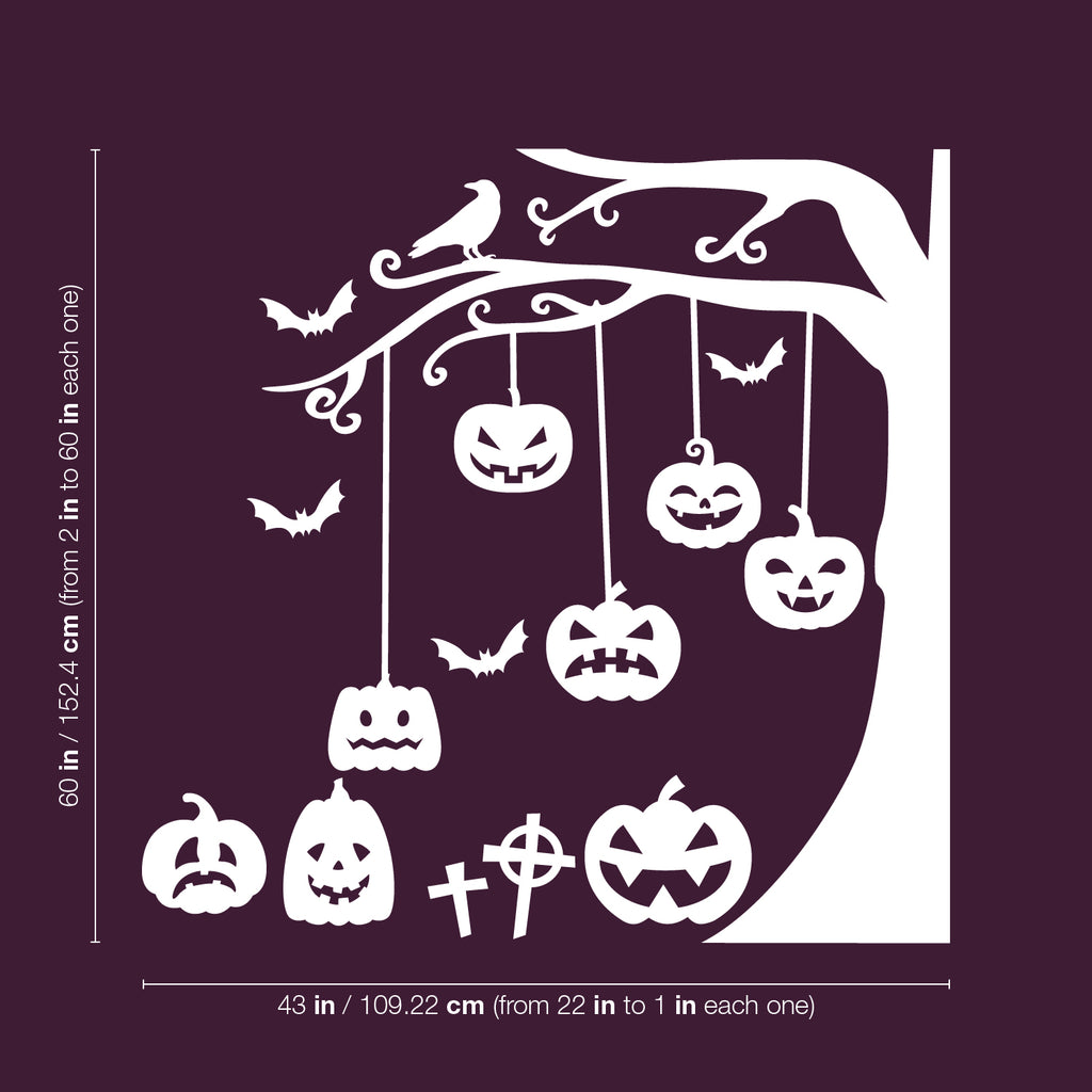 This frightening halloween design decal "Graveyard Tree & Pumpkin"; is the perfect touch for your home or store. Use it for your office; coffee shop; living room or anywhere you want to bring some extra scary decoration. It's a vinyl sticker that is easy to put on any smooth and dry surface. Our modern designs don't just brighten up the room; but brighten up the day. Using top of the line vinyl across all of our production allows us to be the leaders in quality and design.