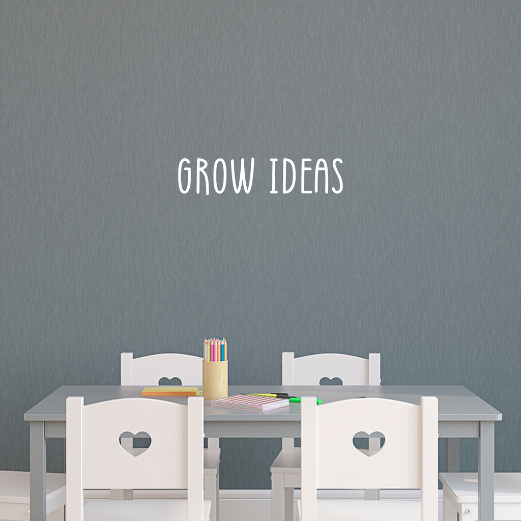This awesome optimistic & motivational decal quote "Grow ideas"; is the perfect touch for your school or office. Use it for your living room; classroom; playroom or anywhere you want to bring some extra positive decoration. It's a vinyl sticker that is easy to put on any smooth and dry surface. Our modern designs don't just brighten up the room; but brighten up the day. Using top of the line vinyl across all of our production allows us to be the leaders in quality and design.