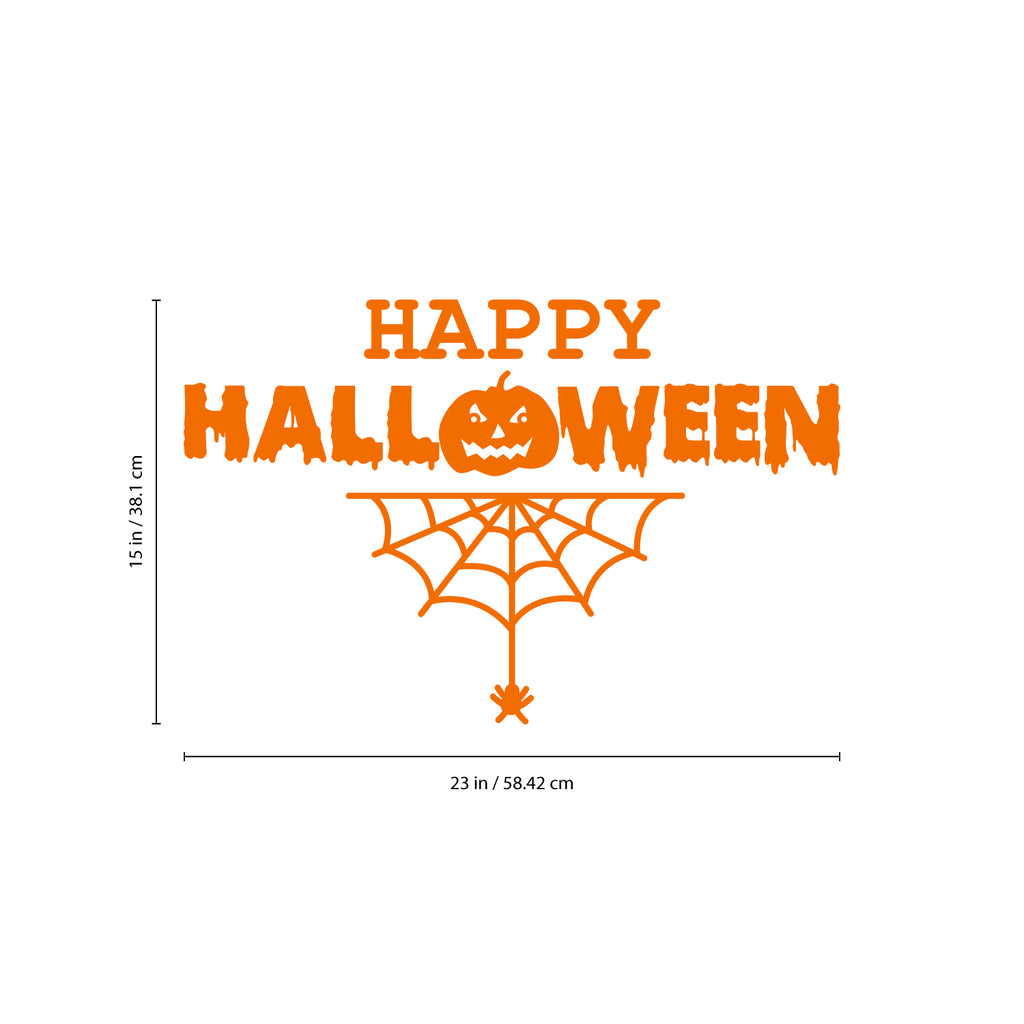 Vinyl Wall Art Decal - Happy Halloween with Spiderweb - Fun Halloween Season Decor Sticker - Kids Teens Adults Indoor Outdoor Wall Door Window Living Room Office Decor (15" x 23"; Black)