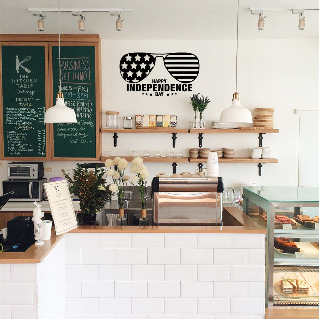 This great decal quote "Happy Independence Day"; is the perfect touch for your home. Use it for your classroom; living room or anywhere you want to bring some extra decoration. It's a vinyl sticker that is easy to put on any smooth and dry surface. Our modern designs don't just brighten up the room; but brighten up the day. Using top of the line vinyl across all of our production allows us to be the leaders in quality and design.