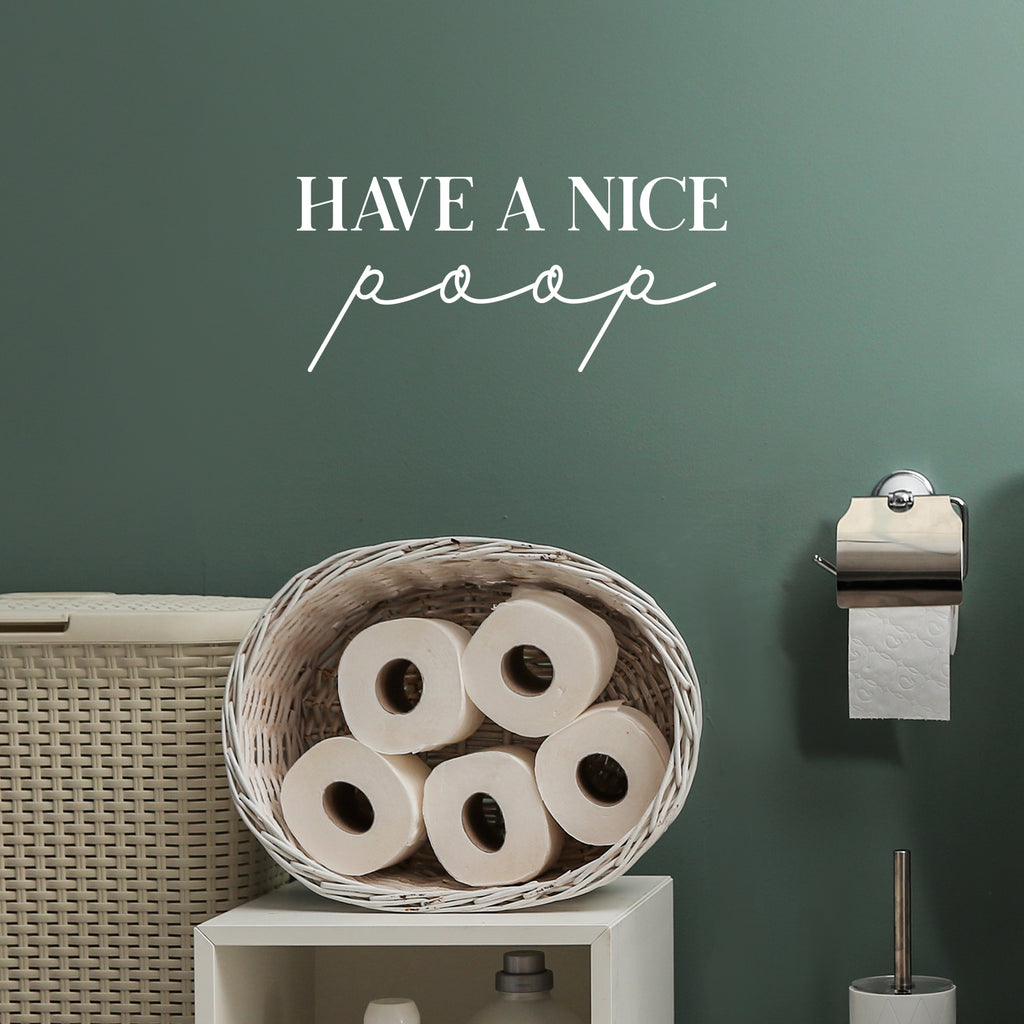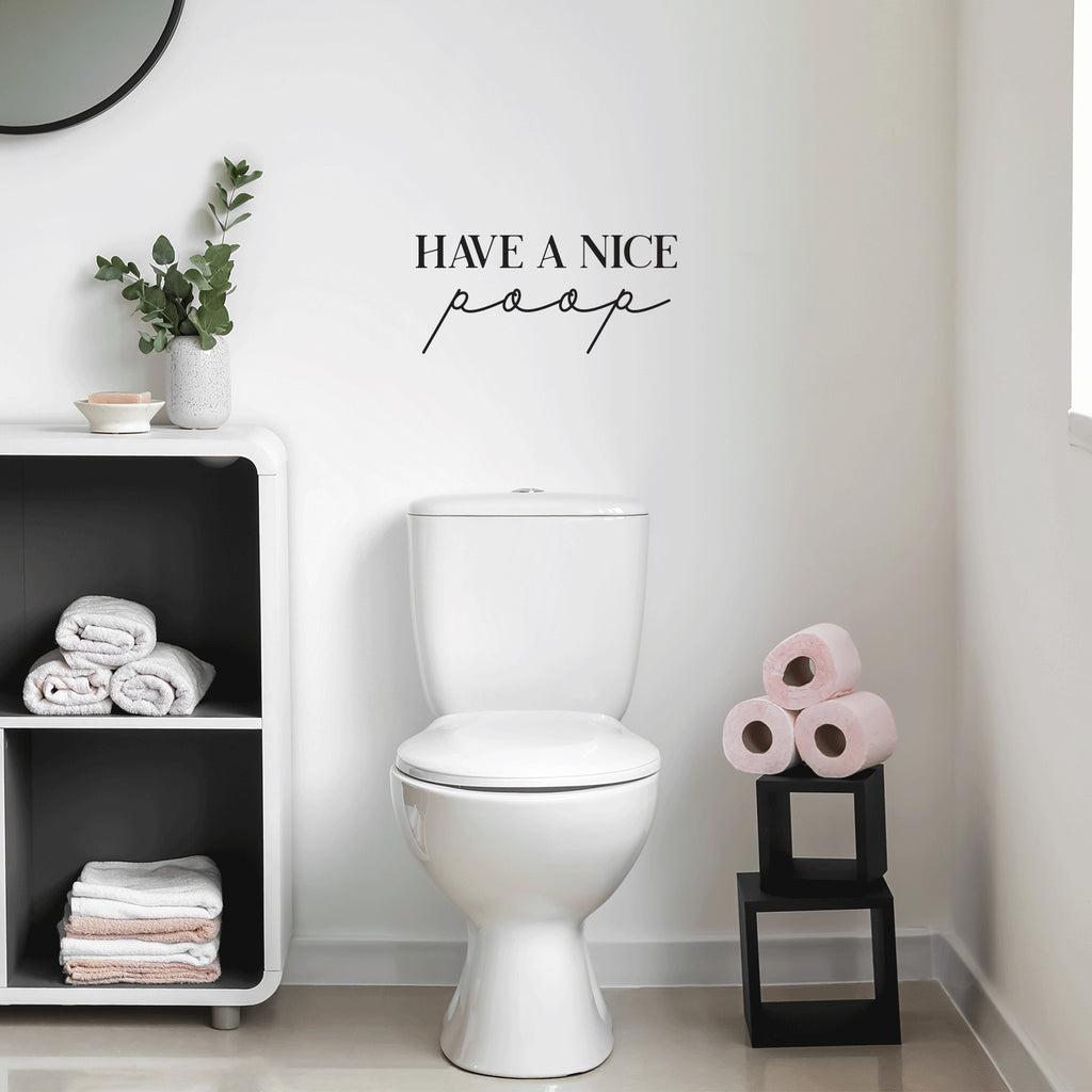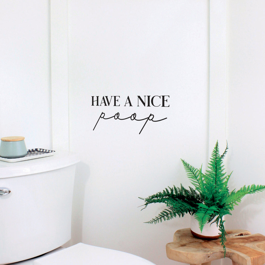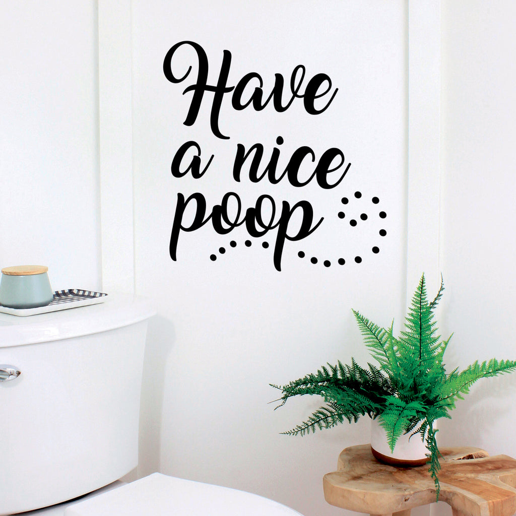 This funny decal quote "Have A Nice Poop"; is the perfect touch for your home. Use it for your bathroom or anywhere you want to bring some extra positive decoration. It's a vinyl sticker that is easy to put on any smooth and dry surface. Our modern designs don't just brighten up the room; but brighten up the day. Using top of the line vinyl across all of our production allows us to be the leaders in quality and design.
