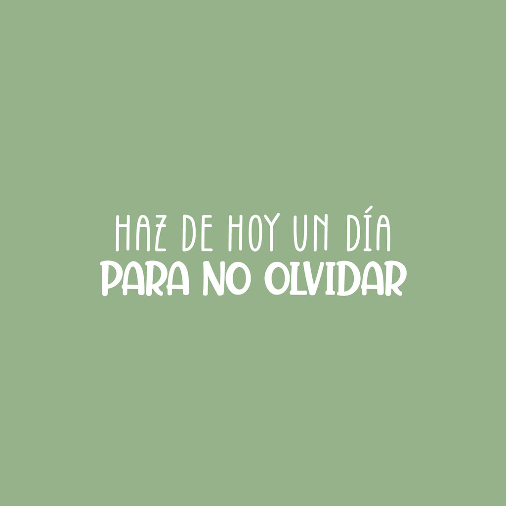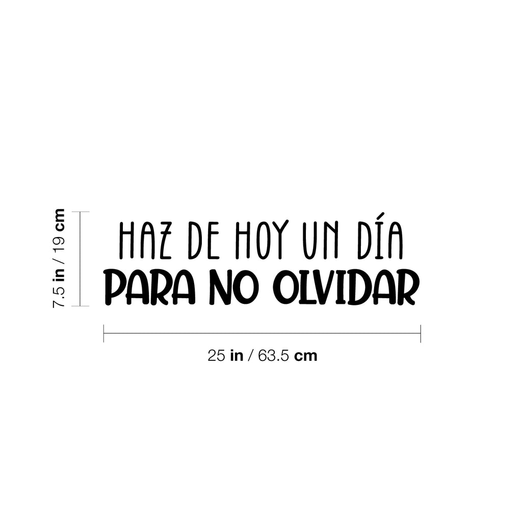 This awesome positive & fun decal quote "Haz De Hoy Un Día Para No Olvidar / Make Today A Day Not To Forget" is the perfect touch for your home or school. Use it for your bedroom; playroom; kids room or anywhere you want to bring some extra cute decoration. It's a vinyl sticker that is easy to put on any smooth and dry surface. Our modern designs don't just brighten up the room; but brighten up the day. Using top of the line vinyl across all of our production allows us to be the leaders in quality and design.