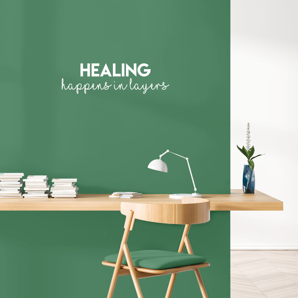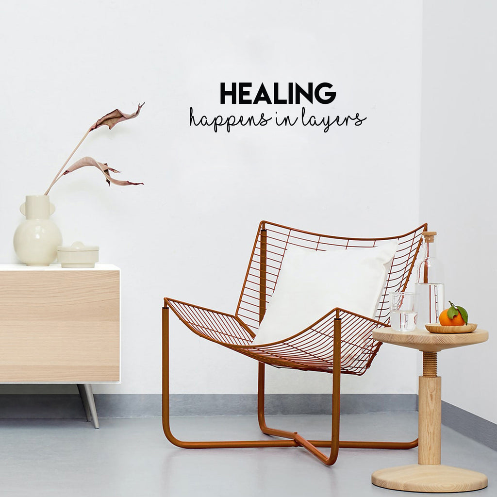 Vinyl Wall Art Decal - Healing Happens In Layers - Modern Inspirational Optimism Quote Sticker for Home Bedroom Living Room Makeup Mirror Therapist Office Decor