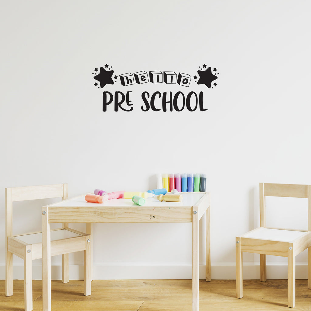 This cute decal quote "Hello Pre School "; is the perfect touch for your home or school. Use it for your playroom; kids room or anywhere you want to bring some extra funny decoration. It's a vinyl sticker that is easy to put on any smooth and dry surface. Our modern designs don't just brighten up the room; but brighten up the day. Using top of the line vinyl across all of our production allows us to be the leaders in quality and design.