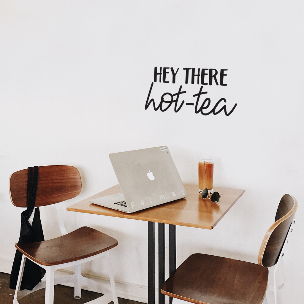 This awesome decal quote "Hey There Hot-Tea"; is the perfect touch for your home or coffee shop. Use it for your bedroom; apartment; home office; living room or anywhere you want to bring some extra decoration. It's a vinyl sticker that is easy to put on any smooth and dry surface. Our modern designs don't just brighten up the room; but brighten up the day. Using top of the line vinyl across all of our production allows us to be the leaders in quality and design.