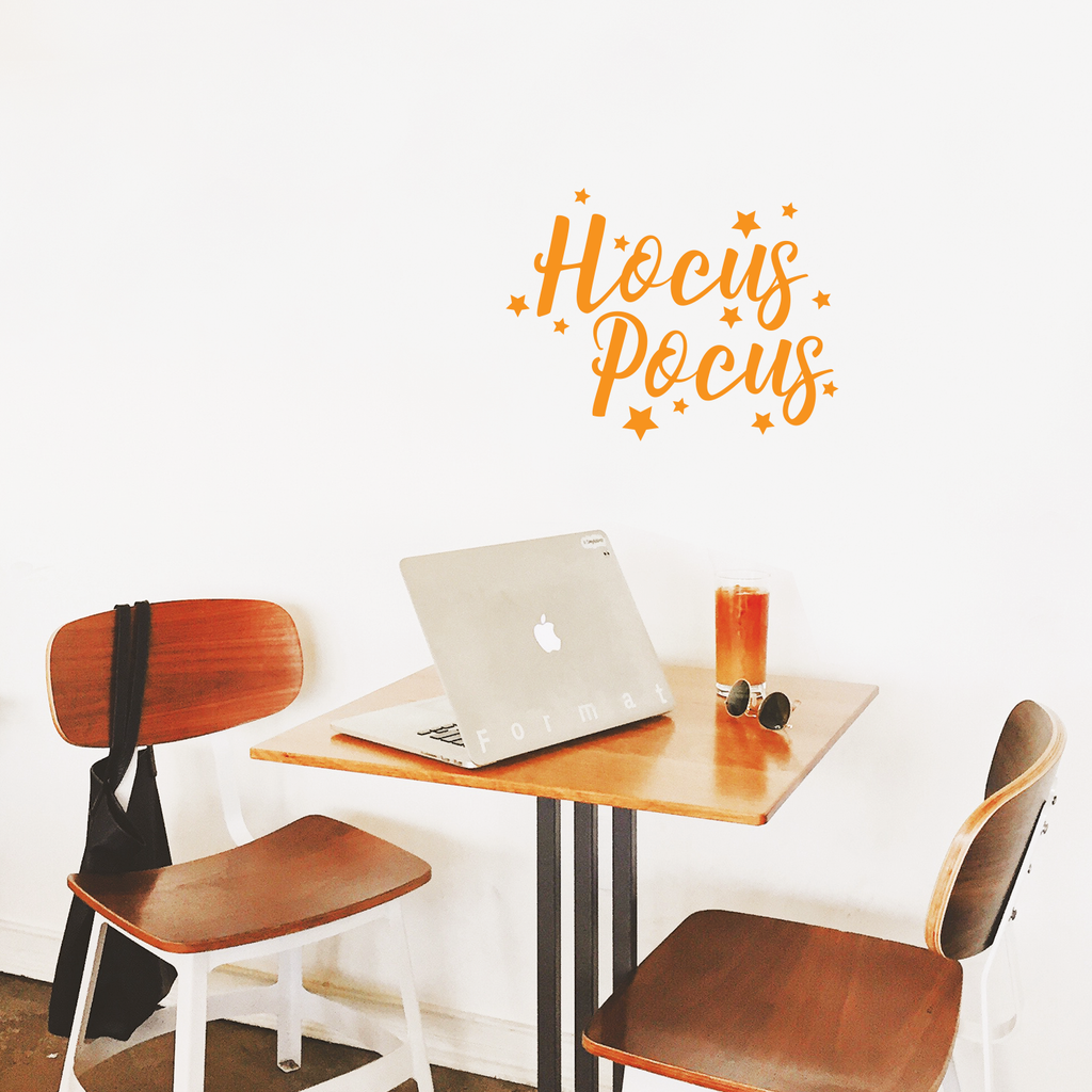 This awesome Halloween decal quote "Hocus Pocus" is the perfect touch for your home. Use it for your living room; office; or anywhere you want to bring some extra decoration. It's a vinyl sticker that is easy to put on any smooth and dry surface. Our modern designs don't just brighten up the room; but brighten up the day. Using top of the line vinyl across all of our production allows us to be the leaders in quality and design.