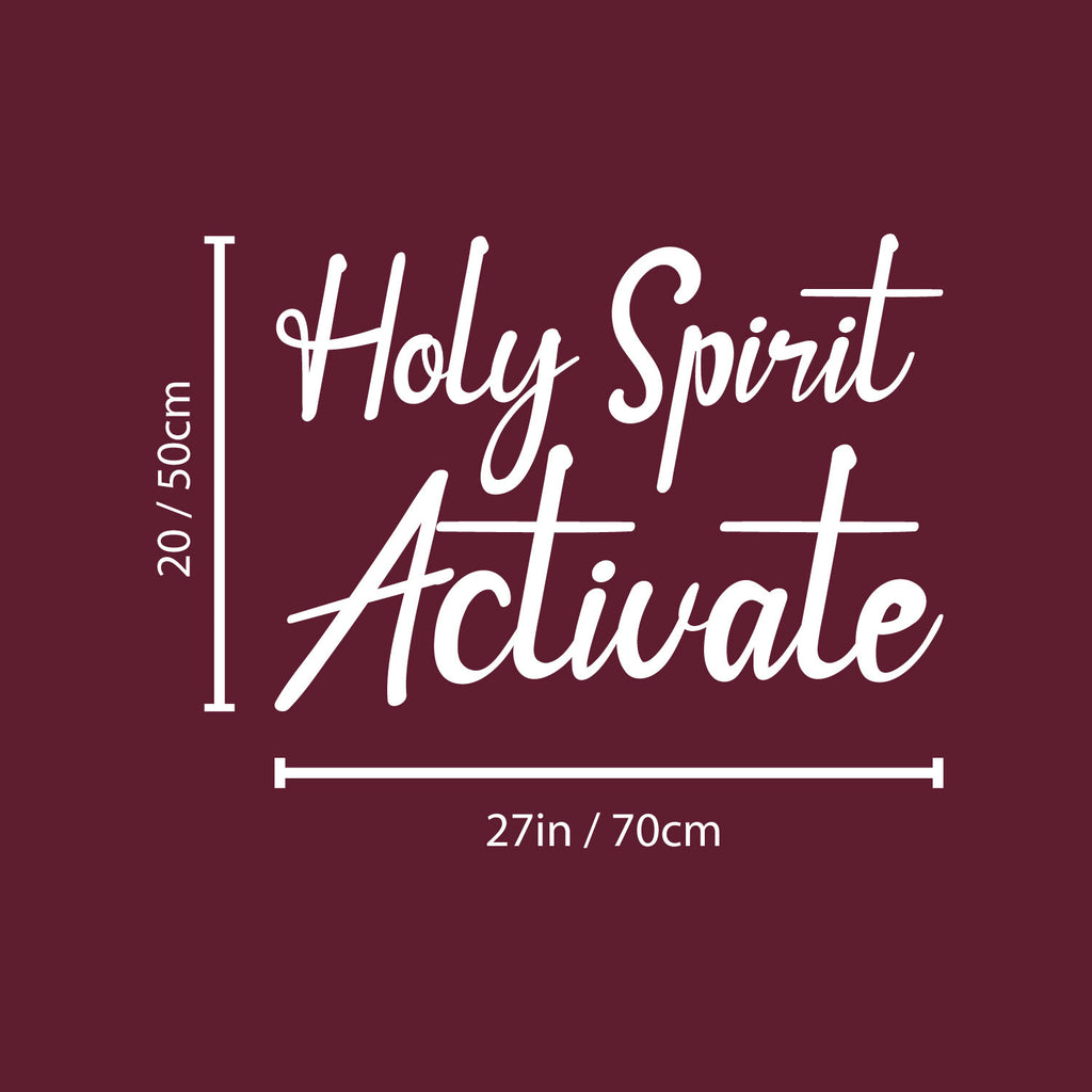 This awesome spiritual & inspiring decal quote "Holy Spirit Activate"; is the perfect touch for your home. Use it for your bedroom; closet; living room or anywhere you want to bring some extra cute decoration. It's a vinyl sticker that is easy to put on any smooth and dry surface. Our modern designs don't just brighten up the room; but brighten up the day. Using top of the line vinyl across all of our production allows us to be the leaders in quality and design.