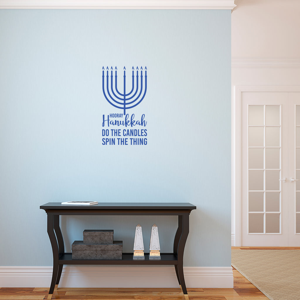 This inspirational & cute thanksgiving season decal "Hooray Hanukkah Do The Candles Spin The Thing"; is the perfect touch for your house or apartment. Use it for your entryway door; living room ; dining room or anywhere you want to bring some extra cute decoration. It's a vinyl sticker that is easy to put on any smooth and dry surface. Our modern designs don't just brighten up the room; but brighten up the day. Using top of the line vinyl across all of our production allows us to be the leaders in quality and design.