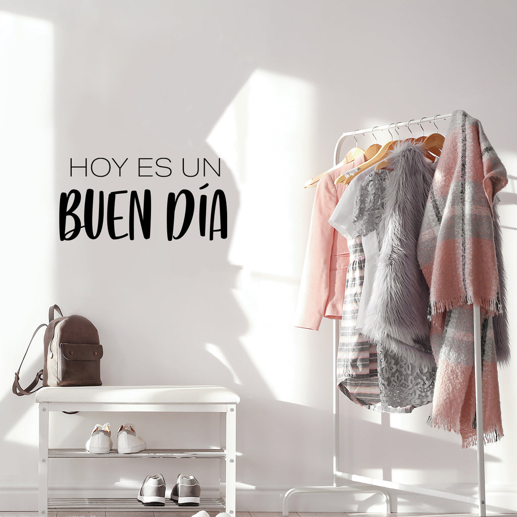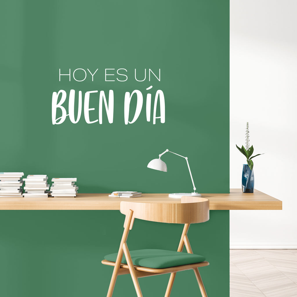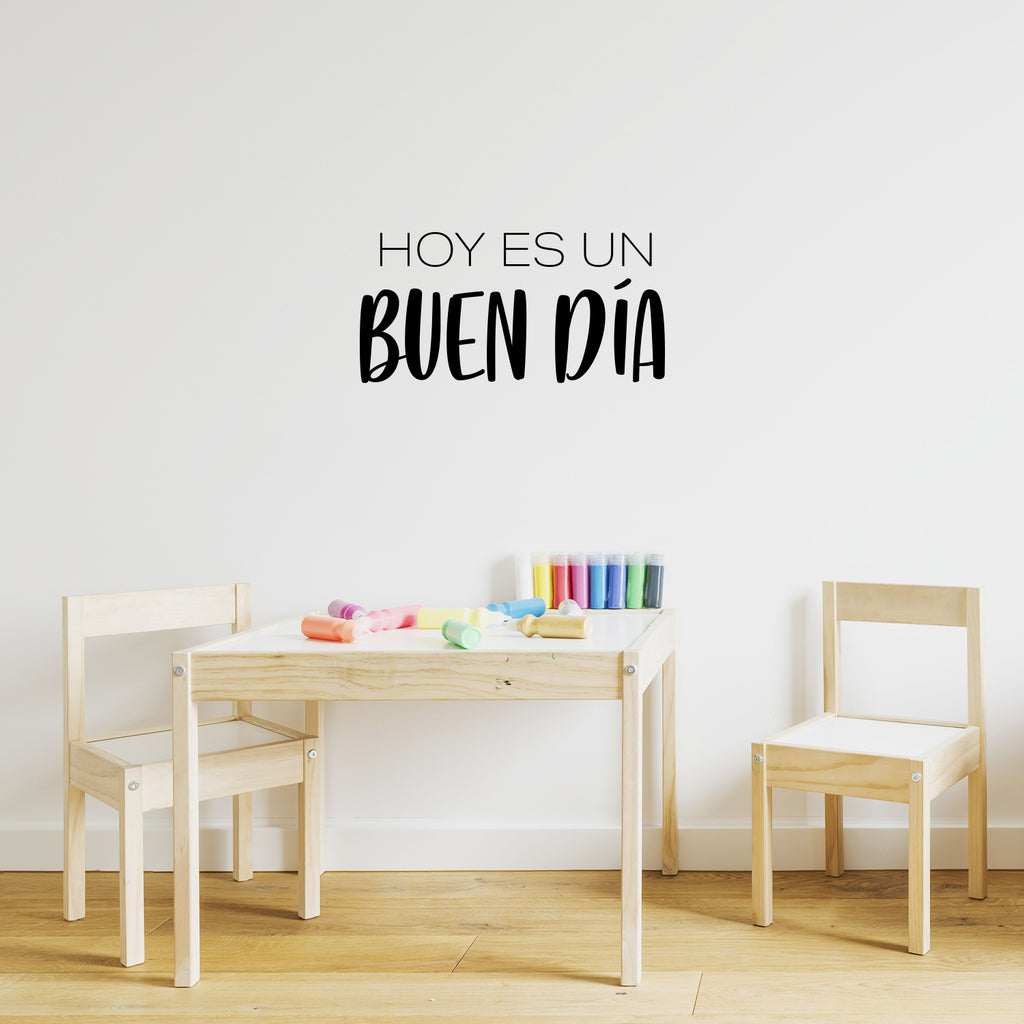 This awesome positive decal quote "Hoy Es Un Buen Día / Today Is A Good Day"; is the perfect touch for your home or office. Use it for your school; living room or anywhere you want to bring some extra optimistic decoration. It's a vinyl sticker that is easy to put on any smooth and dry surface. Our modern designs don't just brighten up the room; but brighten up the day. Using top of the line vinyl across all of our production allows us to be the leaders in quality and design.