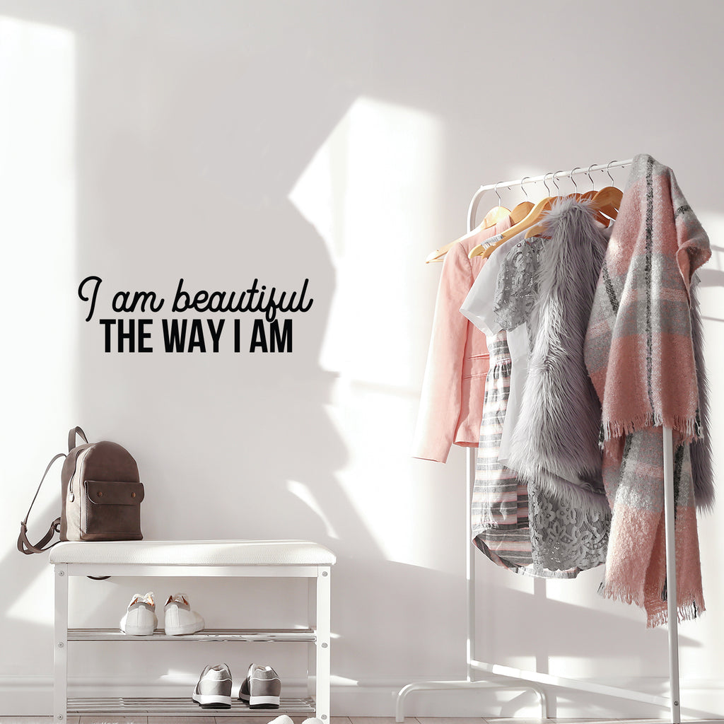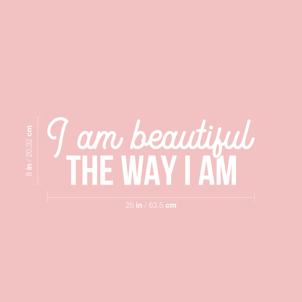 Vinyl Wall Art Decal - I Am Beautiful The Way I Am - Spa Selfcare Trendy Inspirational Self Love Positive Quote Sticker For Home Bedroom Closet Bathroom Make Up Mirror Decor
