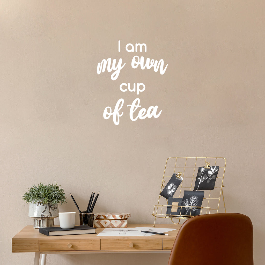 This decal quote "I Am My Own Cup Of Tea"; is the perfect touch for your home or storefront. Use it for your kitchen; dining room; restaurant or anywhere you want to bring some extra decoration. It's a vinyl sticker that is easy to put on any smooth and dry surface. Our modern designs don't just brighten up the room; but brighten up the day. Using top of the line vinyl across all of our production allows us to be the leaders in quality and design.