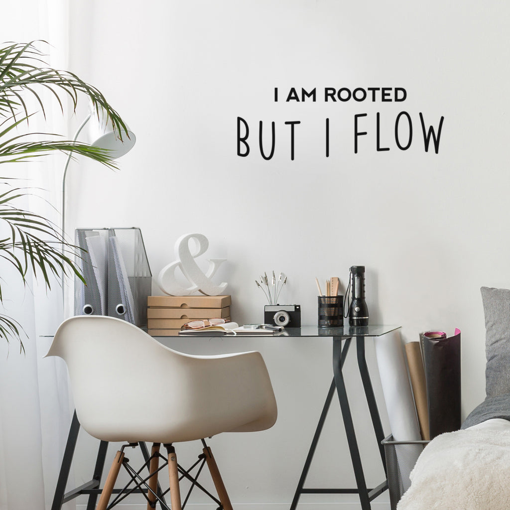This awesome motivating decal quote "I Am Rooted But I Flow"; is the perfect touch for your home or school. Use it for your living room; playroom; kids room or anywhere you want to bring some extra cute decoration. It's a vinyl sticker that is easy to put on any smooth and dry surface. Our modern designs don't just brighten up the room; but brighten up the day. Using top of the line vinyl across all of our production allows us to be the leaders in quality and design.