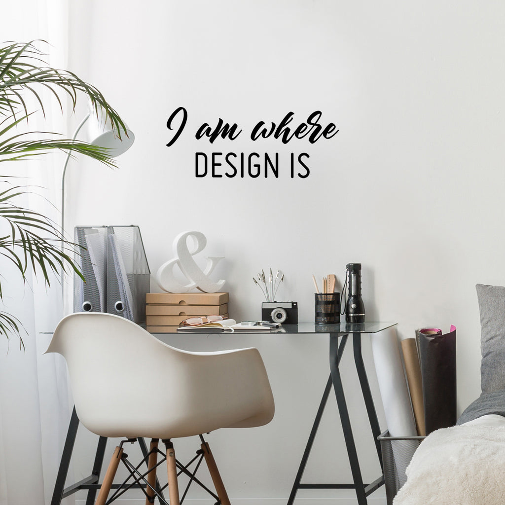 This awesome inspirational decal quote "I Am Where Design Is"; is the perfect touch for your home or classroom. Use it for your home school; living room; office or anywhere you want to bring some extra decoration. It's a vinyl sticker that is easy to put on any smooth and dry surface. Our modern designs don't just brighten up the room; but brighten up the day. Using top of the line vinyl across all of our production allows us to be the leaders in quality and design.