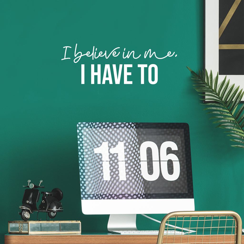 This awesome motivational decal quote "I Believe In Me; I Have To"; is the perfect touch for your home or school. Use it for your living room; closet; coffee shop or anywhere you want to bring some extra cute decoration. It's a vinyl sticker that is easy to put on any smooth and dry surface. Our modern designs don't just brighten up the room; but brighten up the day. Using top of the line vinyl across all of our production allows us to be the leaders in quality and design.