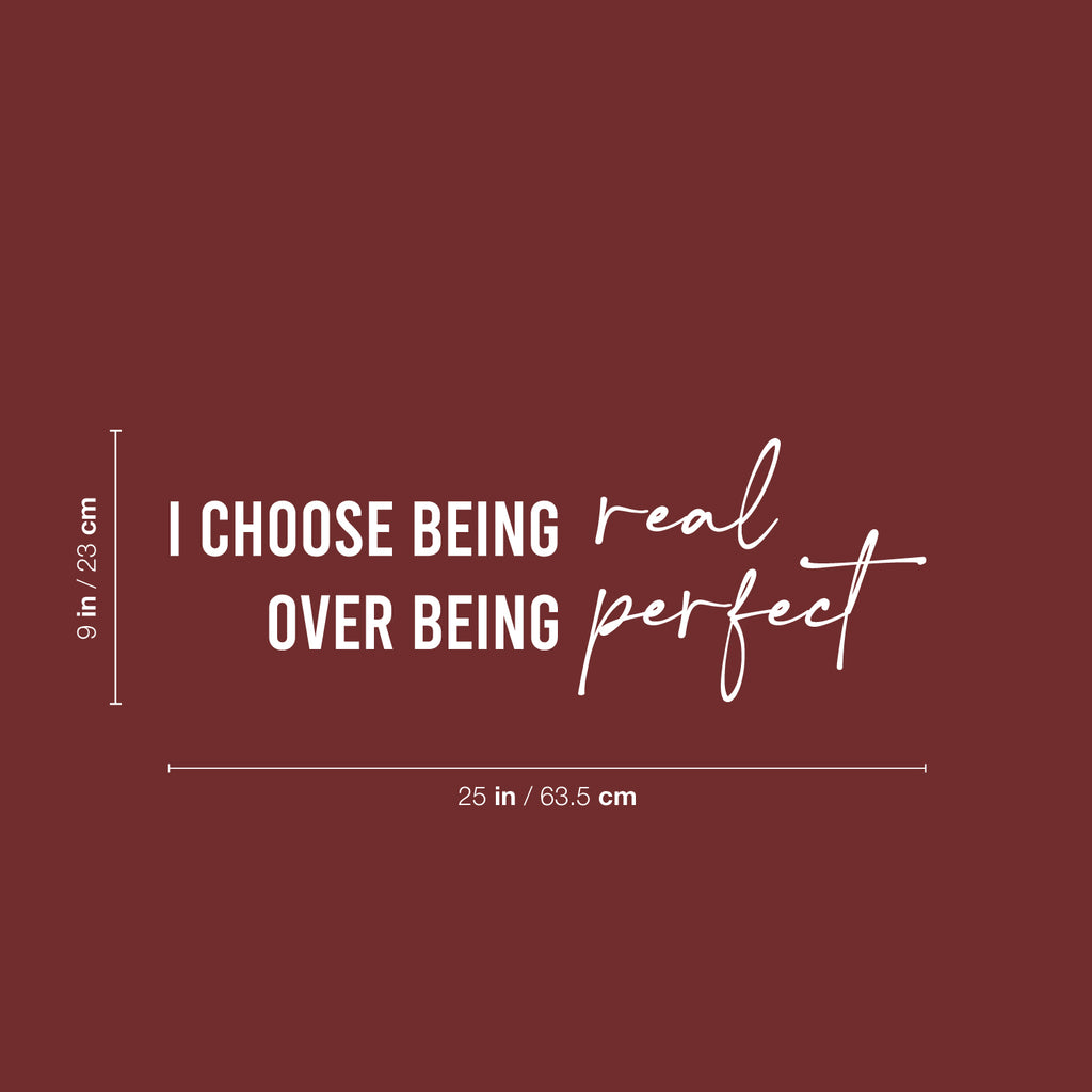 This cute & inspirational decal quote "I Choose Being Real Over Being Perfect"; is the perfect touch for your home or work. Use it for your living room; playroom; kids room; office or anywhere you want to bring some extra cute decoration. It's a vinyl sticker that is easy to put on any smooth and dry surface. Our modern designs don't just brighten up the room; but brighten up the day. Using top of the line vinyl across all of our production allows us to be the leaders in quality and design.