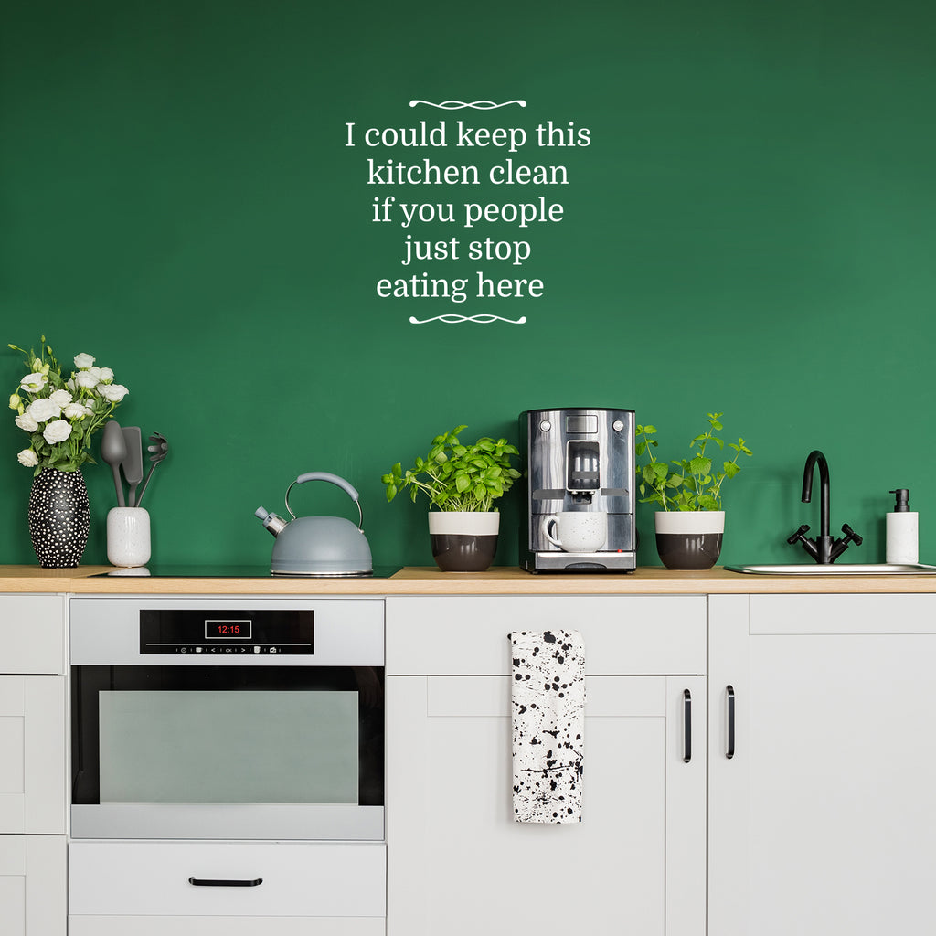 This awesome funny decal quote "I Could Keep This Kitchen Clean"; is the perfect touch for your home. Use it for your dining room; restaurant; kitchen or anywhere you want to bring some extra decoration. It's a vinyl sticker that is easy to put on any smooth and dry surface. Our modern designs don't just brighten up the room; but brighten up the day. Using top of the line vinyl across all of our production allows us to be the leaders in quality and design.