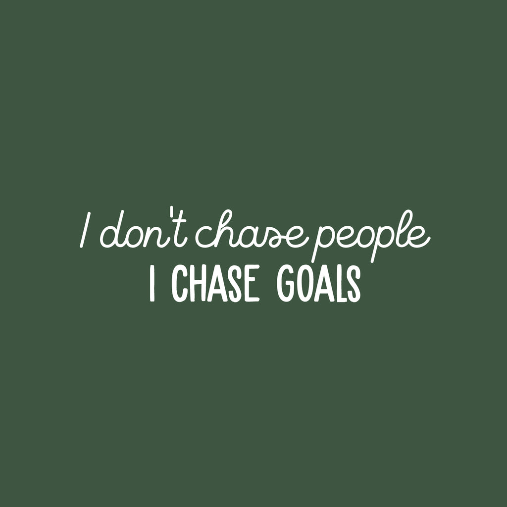 This optimistic decal quote "I Don't Chase People I Chase Goals"; is the perfect touch for your school or office. Use it for your living room; classroom; playroom or anywhere you want to bring some extra positive decoration. It's a vinyl sticker that is easy to put on any smooth and dry surface. Our modern designs don't just brighten up the room; but brighten up the day. Using top of the line vinyl across all of our production allows us to be the leaders in quality and design.