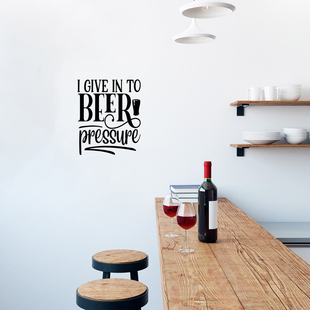 This decal quote "I Give Up In To Beer Pressure"; is the perfect touch for your home or Brewery. Use it for your living room; home bar; beer store or anywhere you want to bring some extra decoration. It's a vinyl sticker that is easy to put on any smooth and dry surface. Our modern designs don't just brighten up the room; but brighten up the day. Using top of the line vinyl across all of our production allows us to be the leaders in quality and design.
