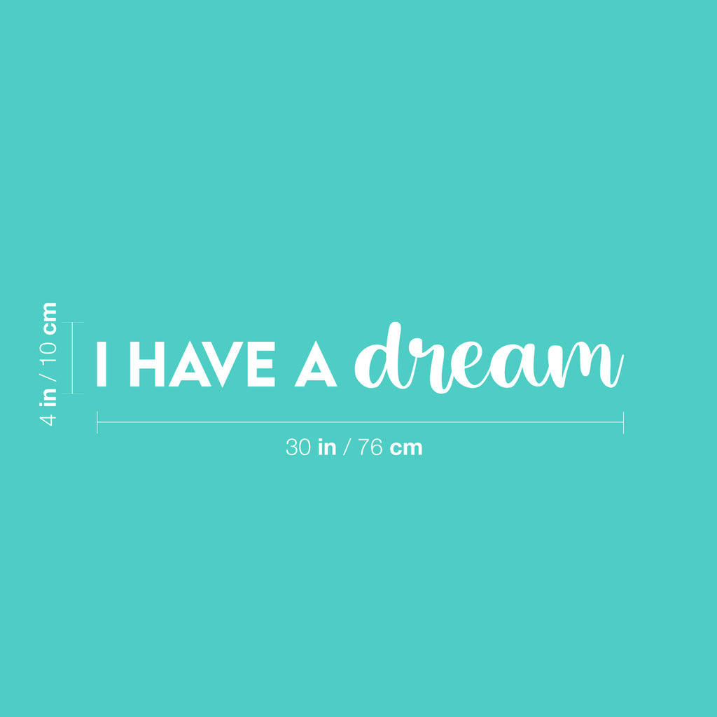 This awesome positive decal quote "I Have A Dream"; is the perfect touch for your home. Use it for your living room; playroom; kids room or anywhere you want to bring some extra cute decoration. It's a vinyl sticker that is easy to put on any smooth and dry surface. Our modern designs don't just brighten up the room; but brighten up the day. Using top of the line vinyl across all of our production allows us to be the leaders in quality and design.