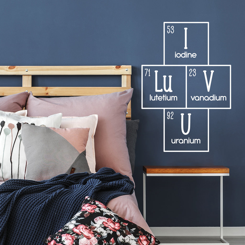 This cute decal quote "I Love You Periodic Table "; is the perfect touch for your home or school. Use it for your playroom; kids room or anywhere you want to bring some extra funny decoration. It's a vinyl sticker that is easy to put on any smooth and dry surface. Our modern designs don't just brighten up the room; but brighten up the day. Using top of the line vinyl across all of our production allows us to be the leaders in quality and design.