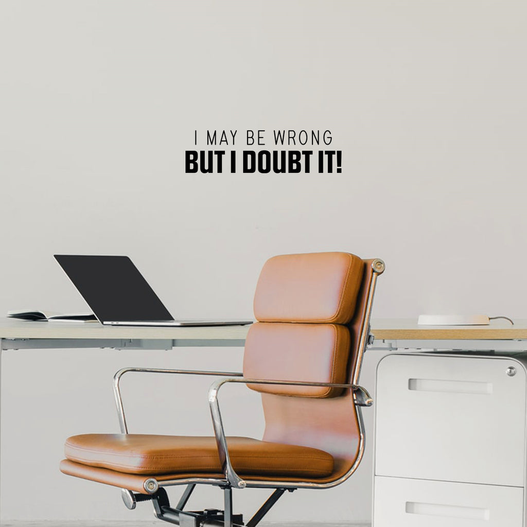 This awesome funny & sarcastic decal quote "I May Be Wrong But I Doubt It!"; is the perfect touch for your home or office. Use it for your store; coffee shop or anywhere you want to bring some extra fun decoration. It's a vinyl sticker that is easy to put on any smooth and dry surface. Our modern designs don't just brighten up the room; but brighten up the day. Using top of the line vinyl across all of our production allows us to be the leaders in quality and design.