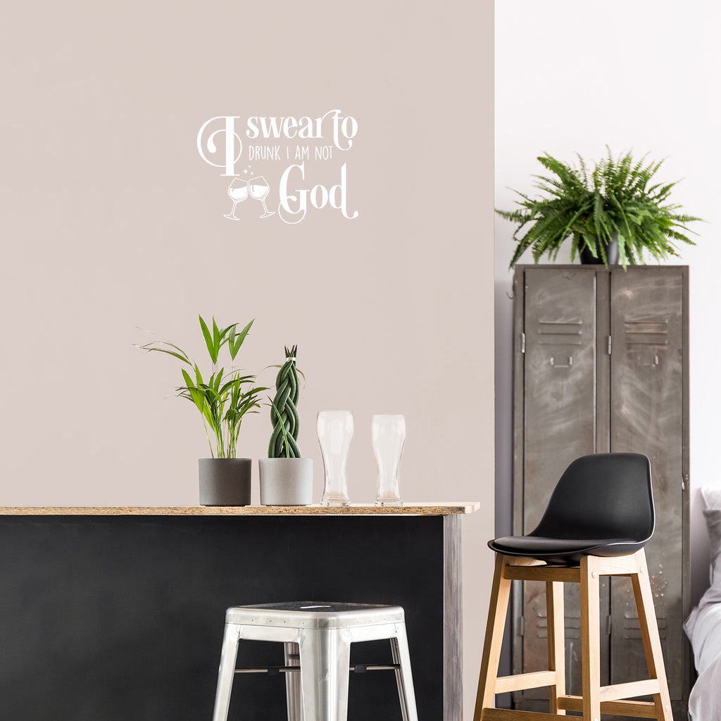 Vinyl Wall Art Decal - I Swear To Drunk I Am Not God - Trendy Sarcastic Funny Adult Joke Quote Sticker For Home Bar Kitchen Wine Cellar Restaurant Decor