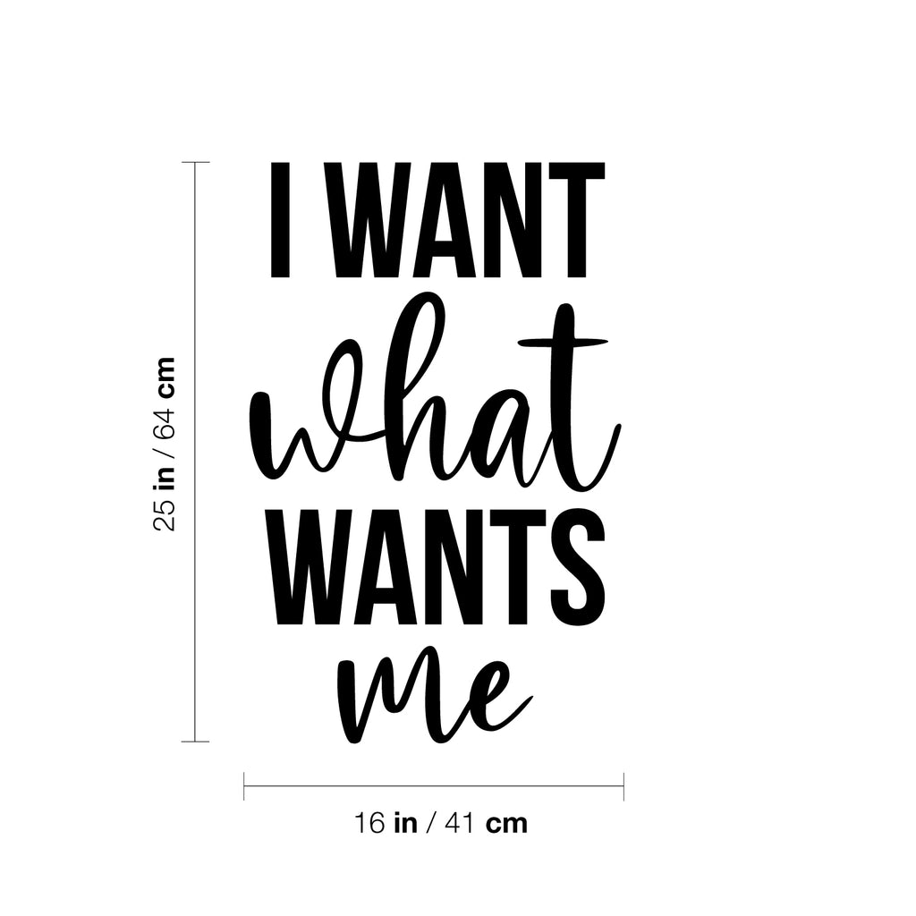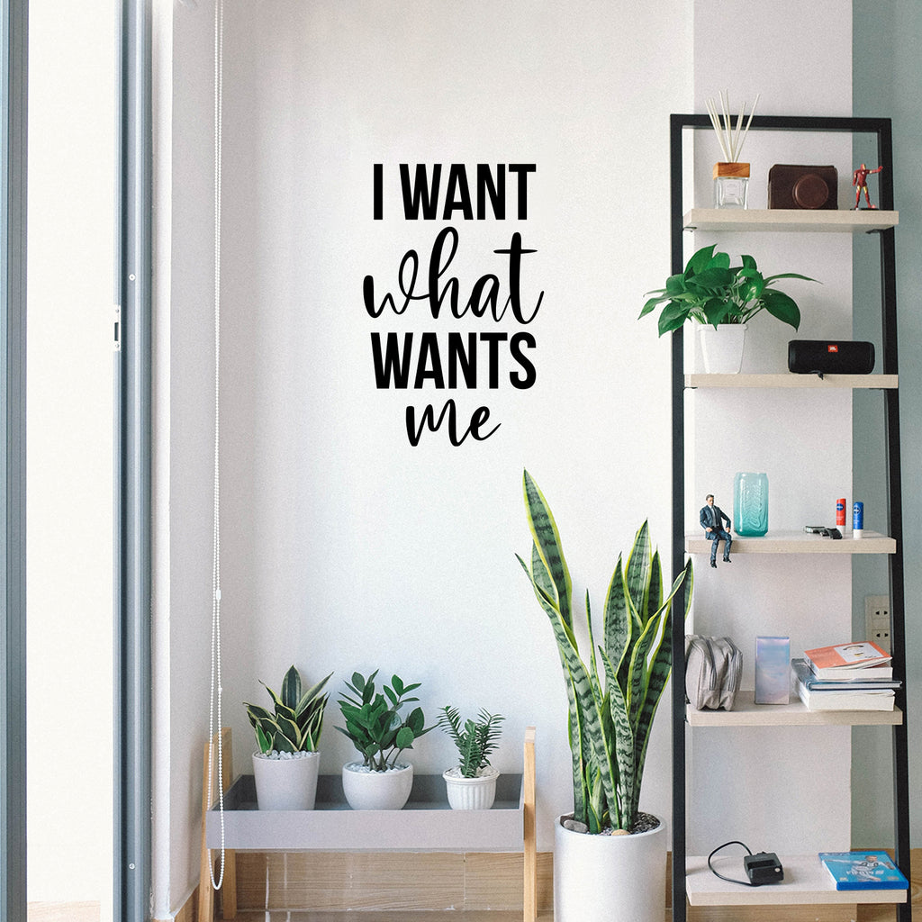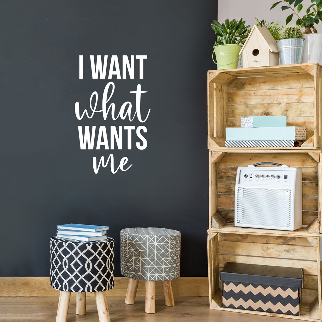This awesome cute & lovely decal quote "I Want What Wants Me"; is the perfect touch for your home or school. Use it for your living room; playroom; office or anywhere you want to bring some extra cute decoration. It's a vinyl sticker that is easy to put on any smooth and dry surface. Our modern designs don't just brighten up the room; but brighten up the day. Using top of the line vinyl across all of our production allows us to be the leaders in quality and design.