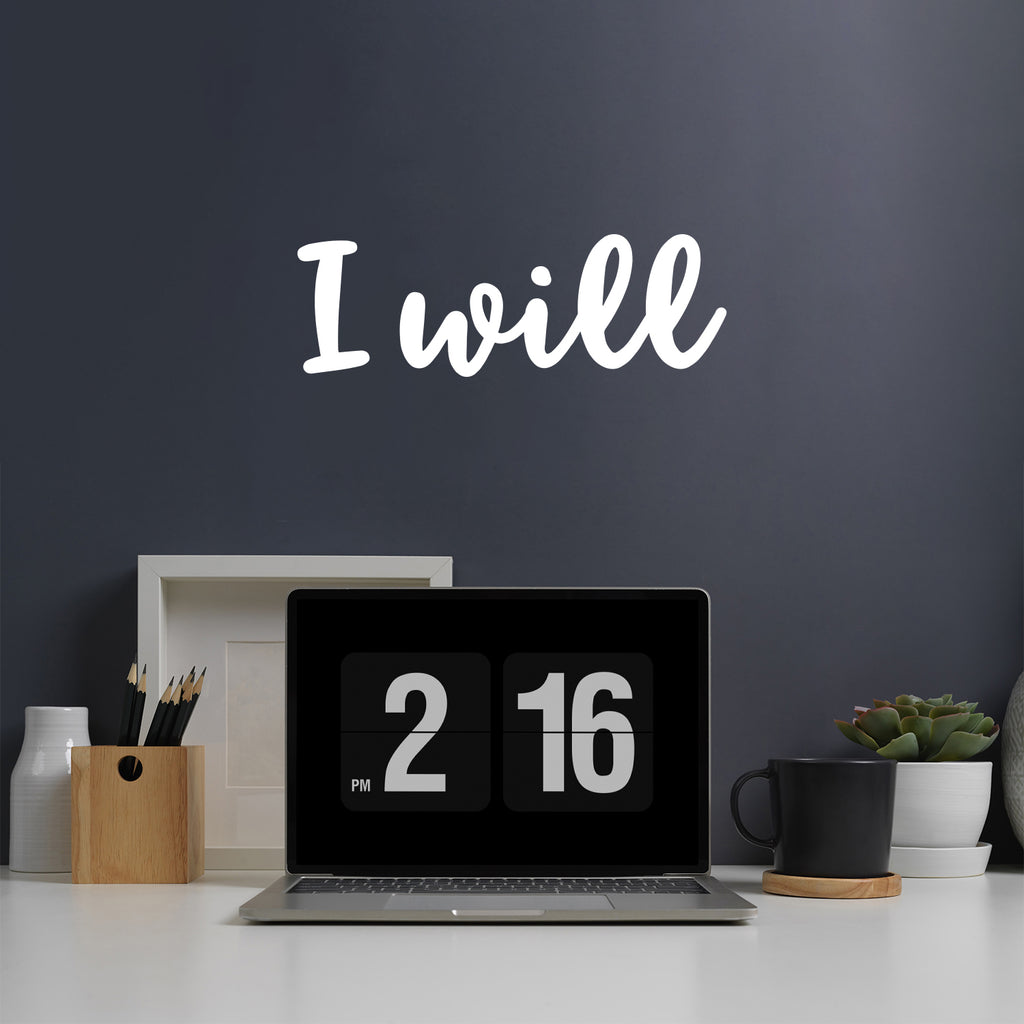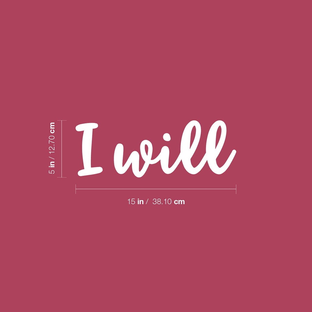 This motivational & optimistic decal quote "I Will"; is the perfect touch for your home. Use it for your living room; playroom; kids room or anywhere you want to bring some extra cute decoration. It's a vinyl sticker that is easy to put on any smooth and dry surface. Our modern designs don't just brighten up the room; but brighten up the day. Using top of the line vinyl across all of our production allows us to be the leaders in quality and design.