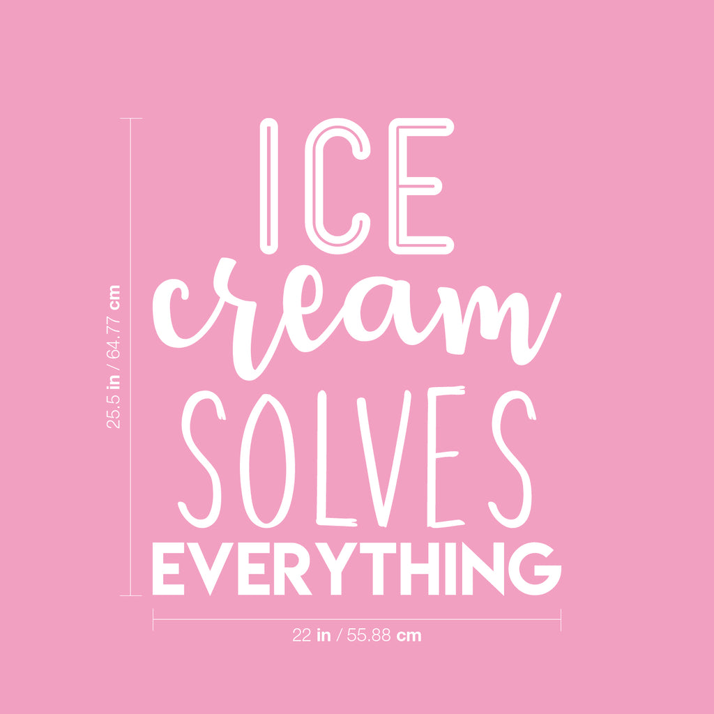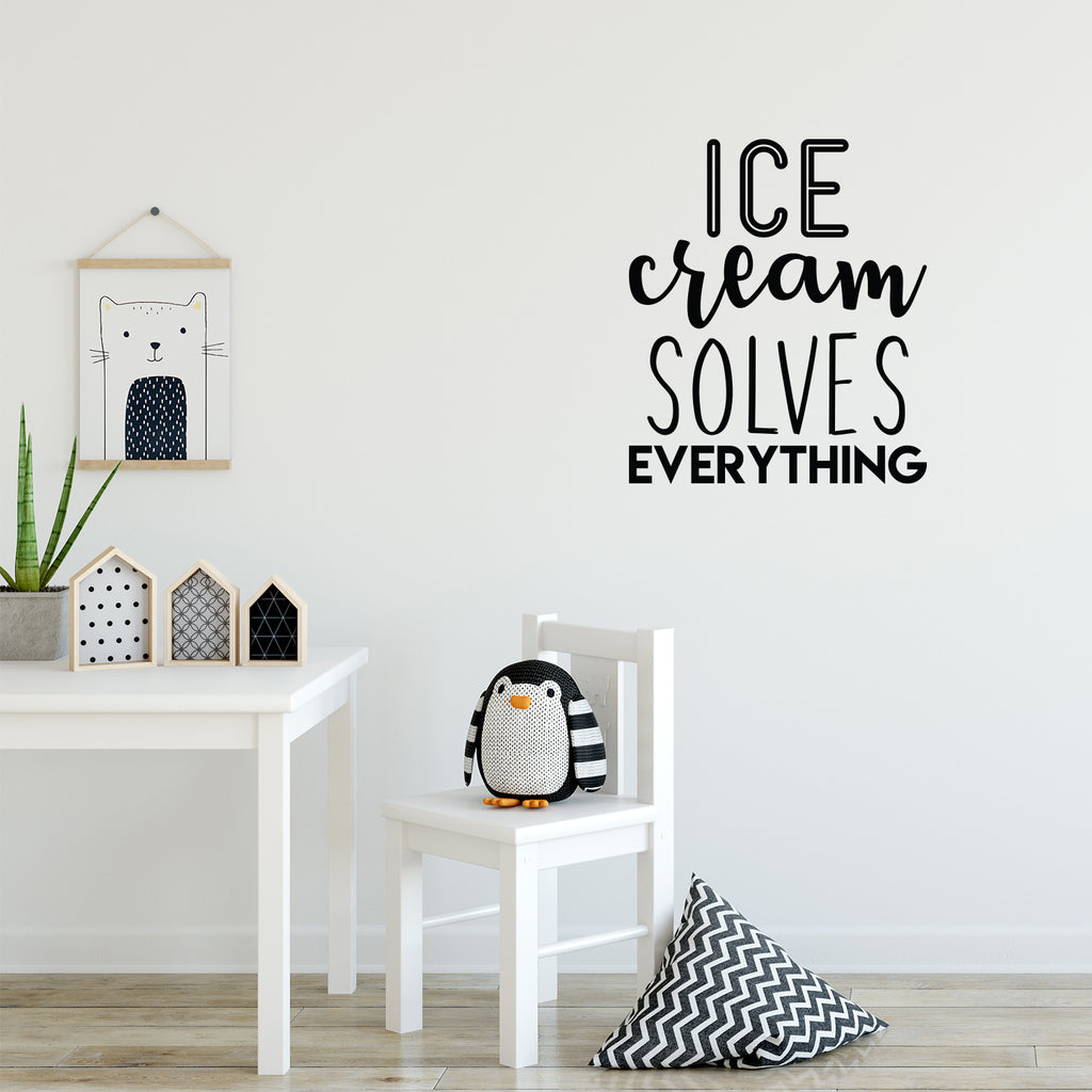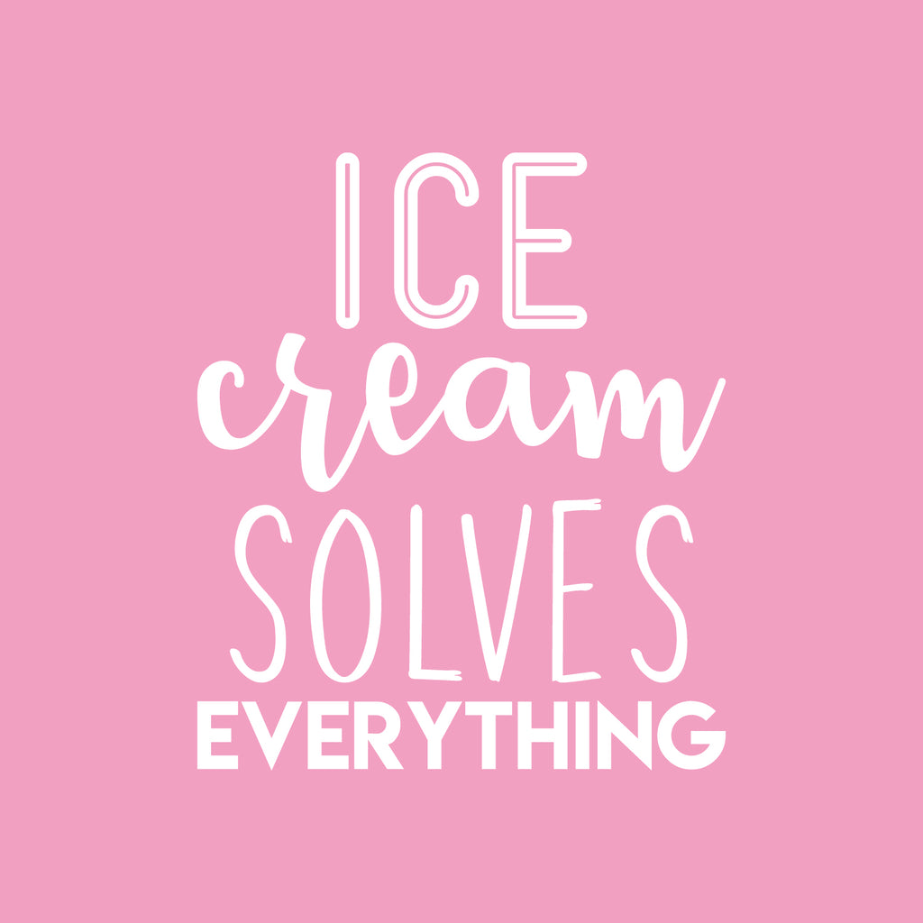 This awesome cute decal quote "Ice Cream Solves Everything"; is the perfect touch for your home or coffee shop. Use it for your dining room; kitchen or anywhere you want to bring some extra decoration. It's a vinyl sticker that is easy to put on any smooth and dry surface. Our modern designs don't just brighten up the room; but brighten up the day. Using top of the line vinyl across all of our production allows us to be the leaders in quality and design.