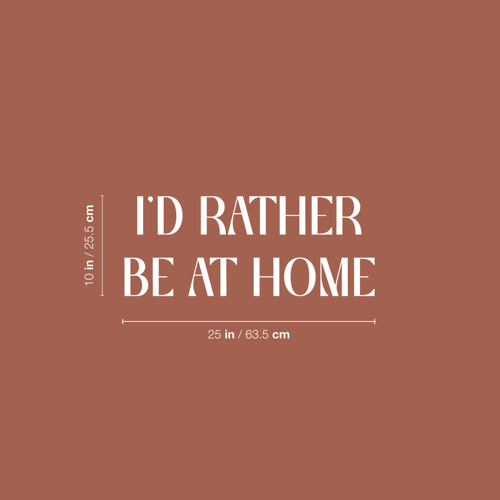 This cute motivational & positive decal quote "I'd Rather Be At Home"; is the perfect touch for your home or office. Use it for your bedroom; gym; living room or anywhere you want to bring some extra positive decoration. It's a vinyl sticker that is easy to put on any smooth and dry surface. Our modern designs don't just brighten up the room; but brighten up the day. Using top of the line vinyl across all of our production allows us to be the leaders in quality and design.