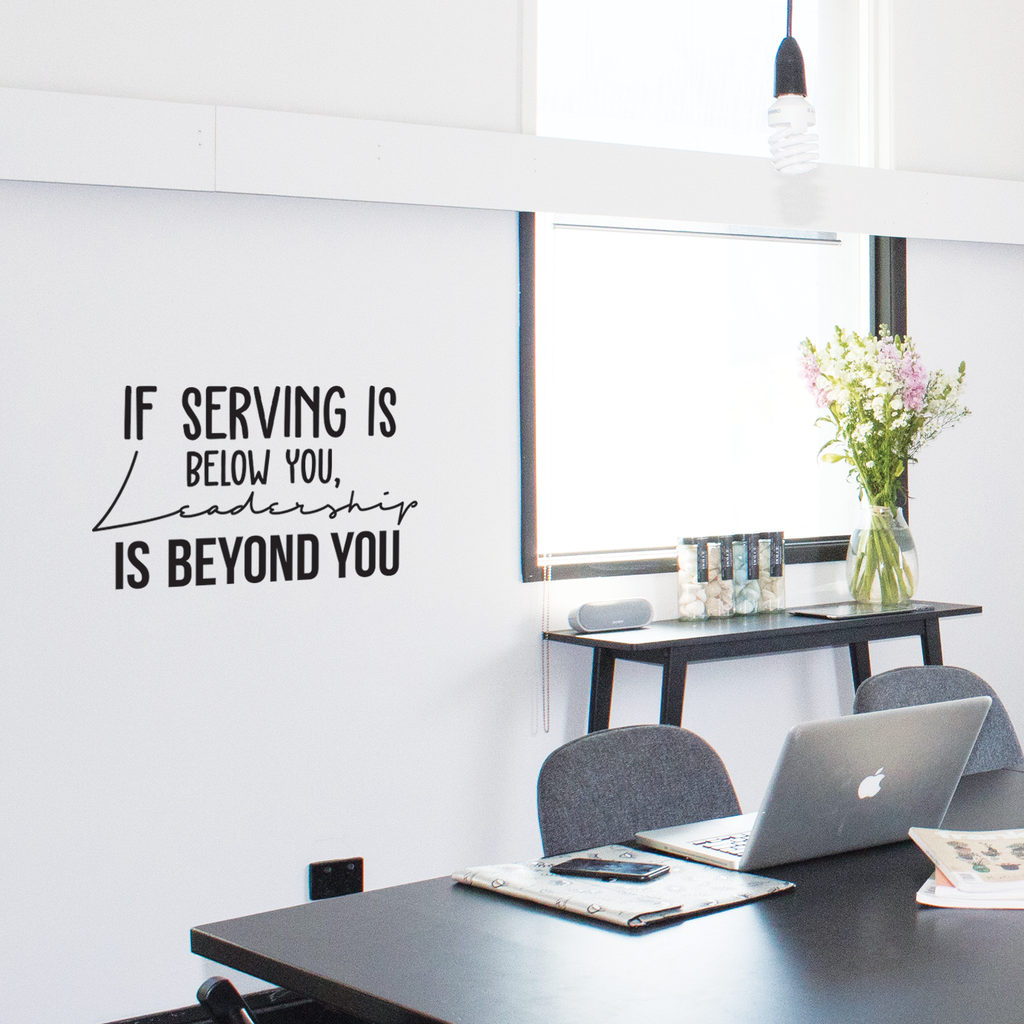 This "If Serving Is Below You Leadership Is Beyond You" is the perfect touch for your home or workplace. Use it for your bedroom; living room; office; or anywhere you want to bring some extra decoration. It's a vinyl sticker that is easy to put on almost any smooth and dry surface. Our modern designs don't just brighten up the room; but brighten up the day. Using top of the line vinyl across all of our production allows us to be the leaders in quality and design.