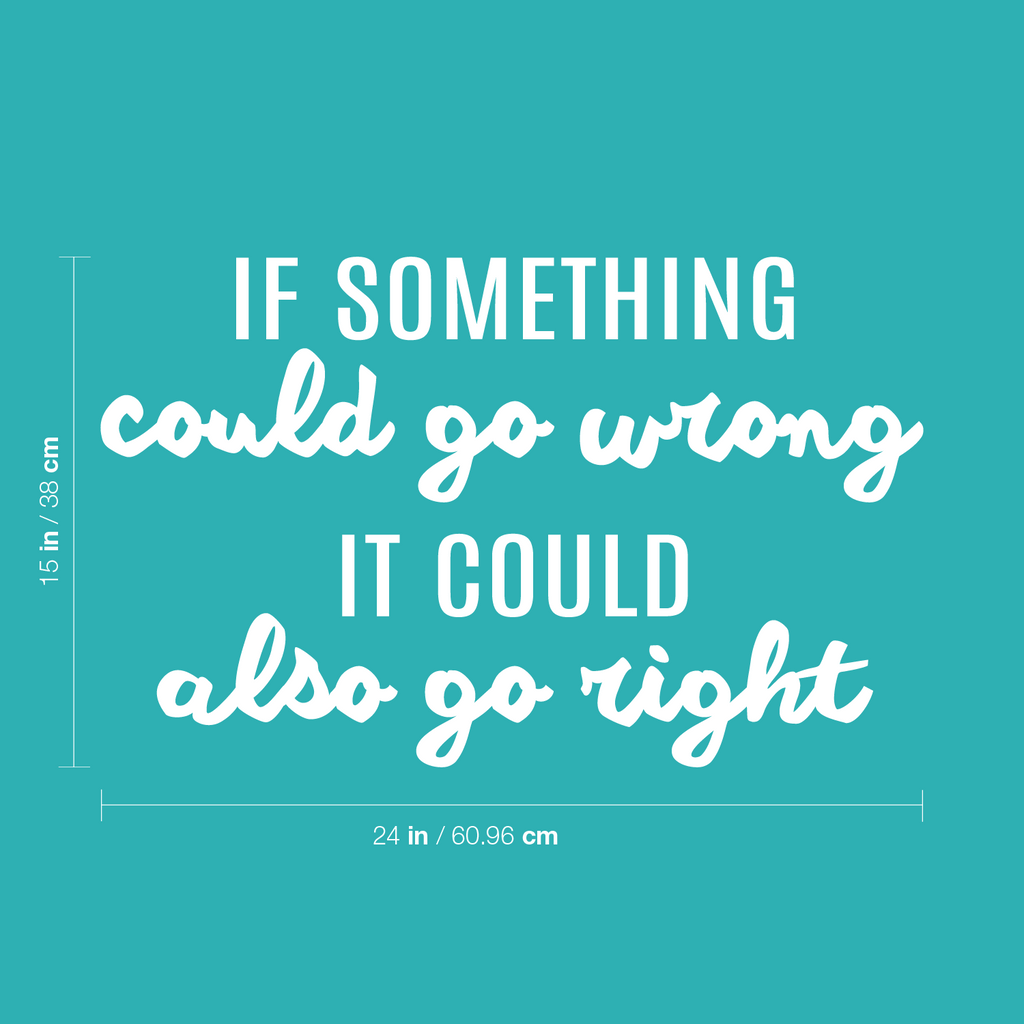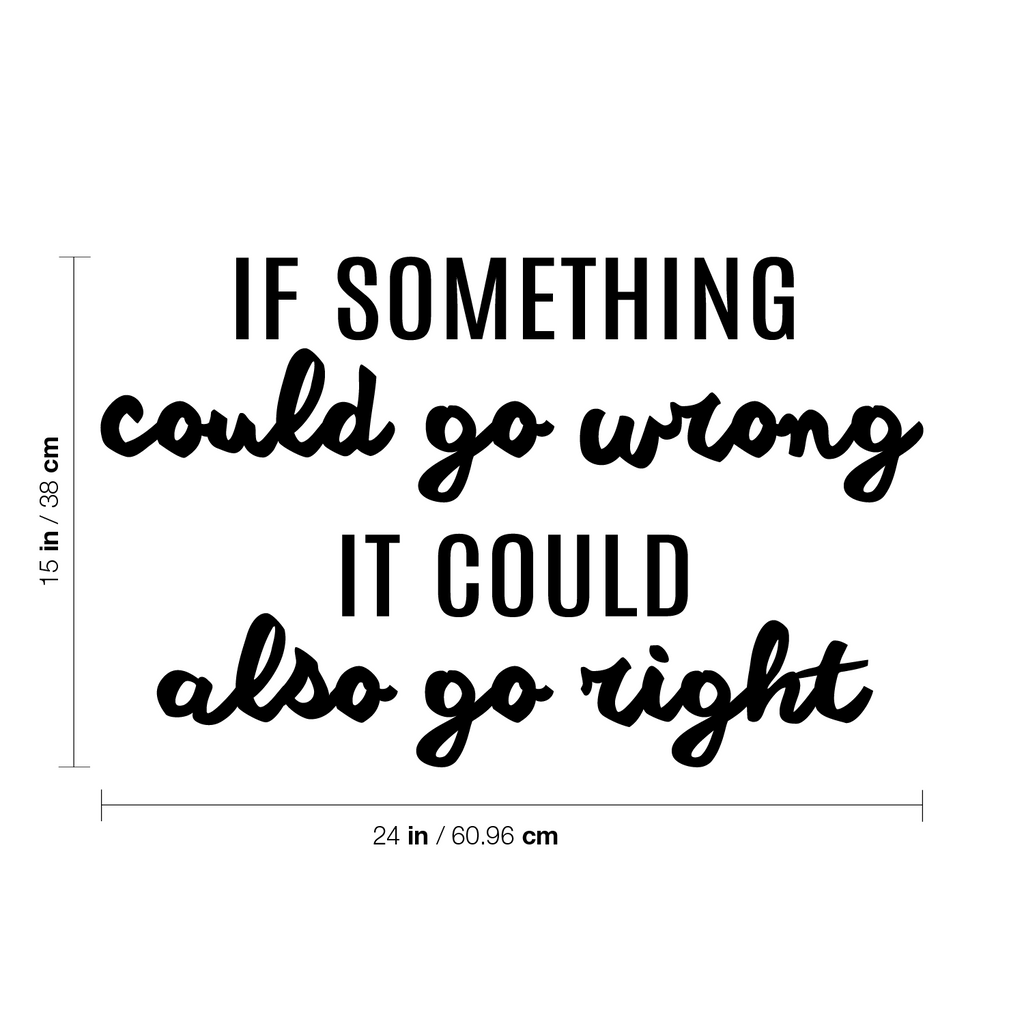 This awesome motivational decal quote "If Something Could Go Wrong It Could Also Go Right"; is the perfect touch for your home. Use it for your bedroom; closet; classroom or anywhere you want to bring some extra positive decoration. It's a vinyl sticker that is easy to put on any smooth and dry surface. Our modern designs don't just brighten up the room; but brighten up the day. Using top of the line vinyl across all of our production allows us to be the leaders in quality and design.