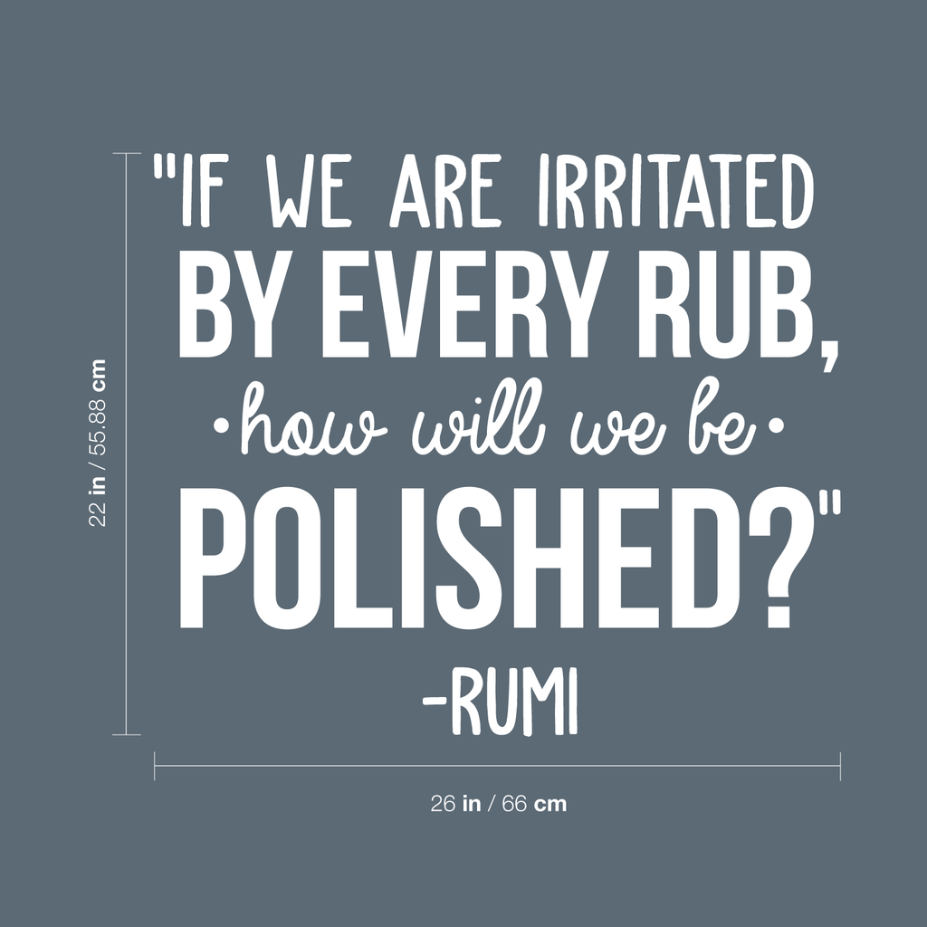 This awesome positive decal quote "If We Are Irritated By Every Rub How Will We Be Polished"; is the perfect touch for your home or office. Use it for your dorm room; living room or anywhere you want to bring some extra optimistic decoration. It's a vinyl sticker that is easy to put on any smooth and dry surface. Our modern designs don't just brighten up the room; but brighten up the day. Using top of the line vinyl across all of our production allows us to be the leaders in quality and design.
