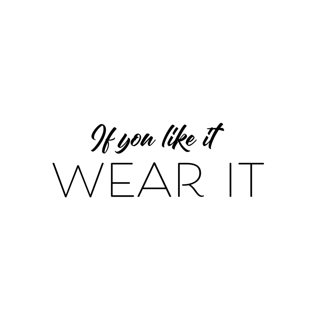 This decal quote " If You Like It Wear It"; is the perfect touch for your home. Use it for your dorm room or anywhere you want to bring some extra decoration. It's a vinyl sticker that is easy to put on any smooth and dry surface. Our modern designs don't just brighten up the room; but brighten up the day. Using top of the line vinyl across all of our production allows us to be the leaders in quality and design.