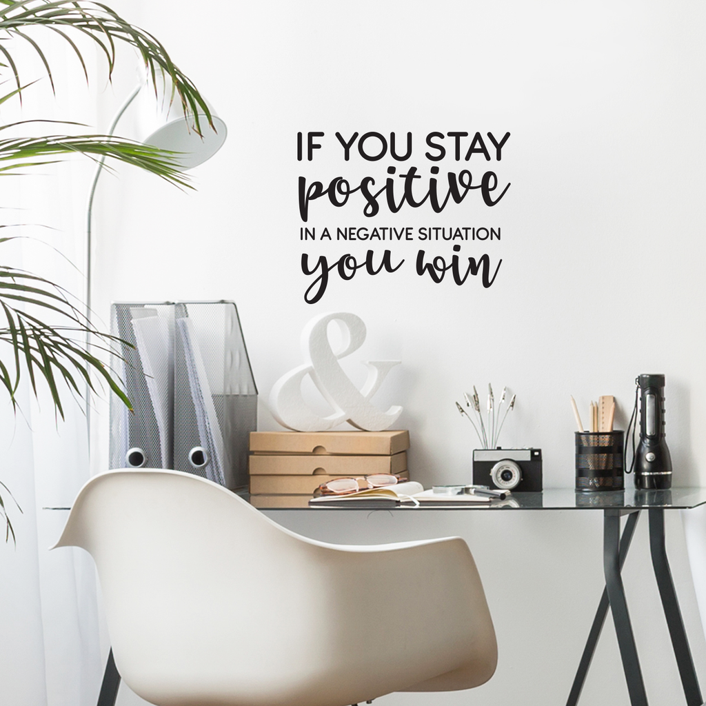 This awesome positive decal quote "If You Stay Positive In A Negative Situation You Win"; is the perfect touch for your home or office. Use it for your bedroom; kids room; living room or anywhere you want to bring some extra positive decoration. It's a vinyl sticker that is easy to put on any smooth and dry surface. Our modern designs don't just brighten up the room; but brighten up the day. Using top of the line vinyl across all of our production allows us to be the leaders in quality and design.