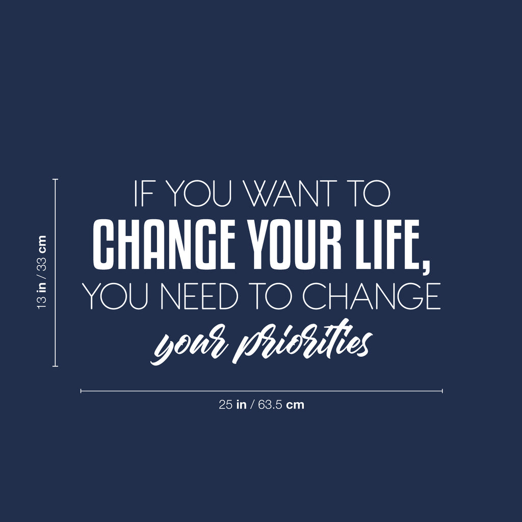 Vinyl Wall Art Decal - If You Want To Change Your Life You Need To Change Your Priorities - Modern Inspirational Positive Quote Sticker For Home Office Bedroom Decor