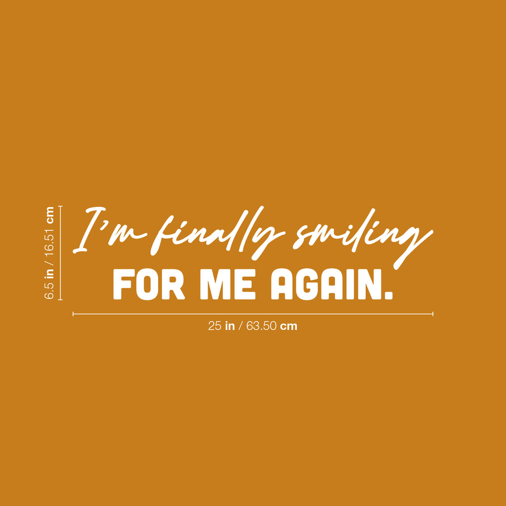 This awesome positive decal quote "I'm Finally Smiling For Me Again"; is the perfect touch for your home. Use it for your bedroom; closet; living room or anywhere you want to bring some extra positive decoration. It's a vinyl sticker that is easy to put on any smooth and dry surface. Our modern designs don't just brighten up the room; but brighten up the day. Using top of the line vinyl across all of our production allows us to be the leaders in quality and design.