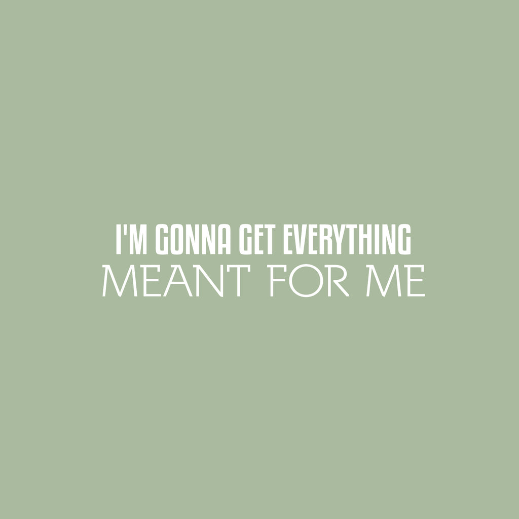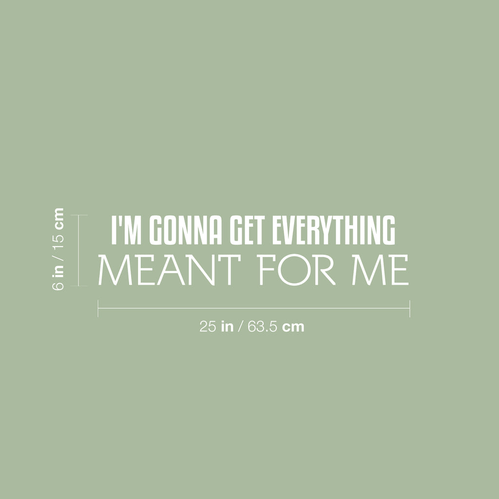 This awesome motivational decal quote "I'm Gonna Get Everything Meant For Me"; is the perfect touch for your home. Use it for your bedroom; closet; living room or anywhere you want to bring some extra positive decoration. It's a vinyl sticker that is easy to put on any smooth and dry surface. Our modern designs don't just brighten up the room; but brighten up the day. Using top of the line vinyl across all of our production allows us to be the leaders in quality and design.