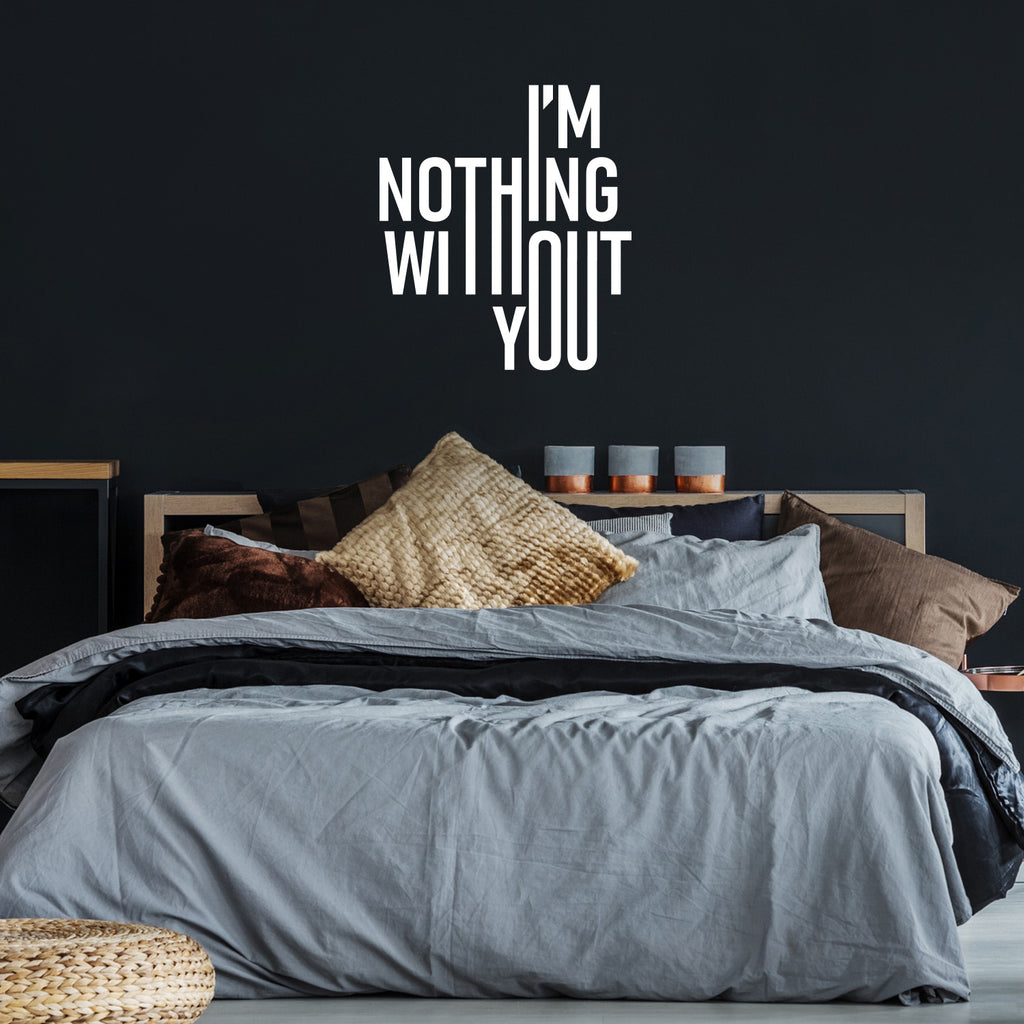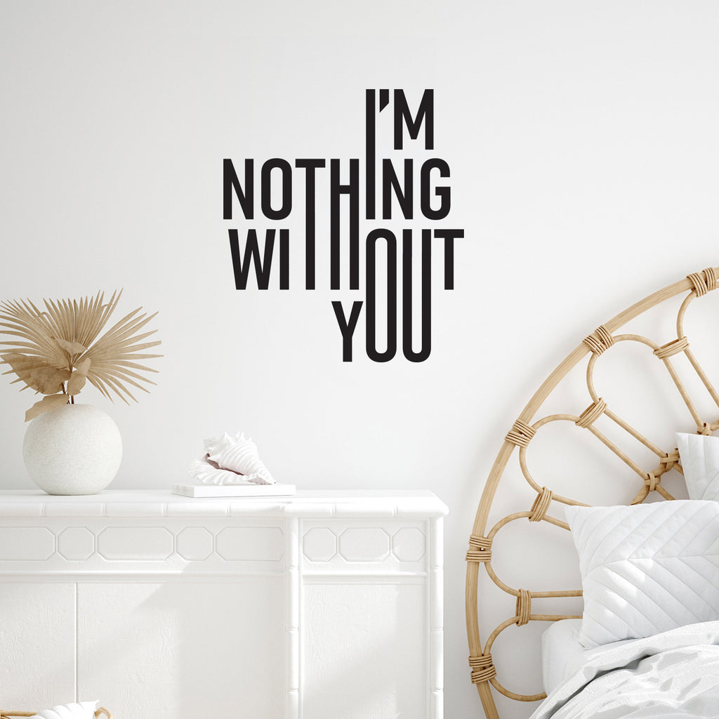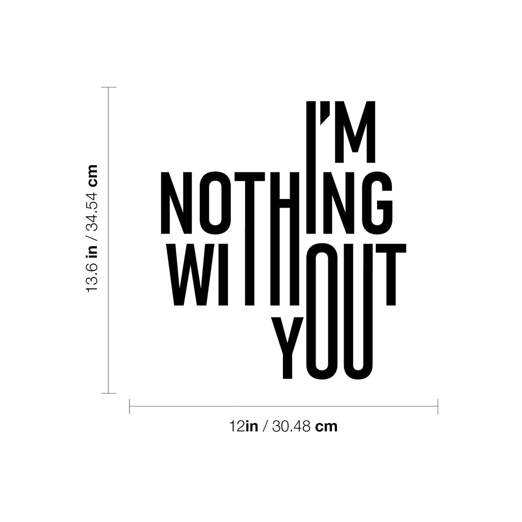 This cute & inspirational decal quote "I'm Nothing Without You"; is the perfect touch for your home. Use it for your living room; dorm room or anywhere you want to bring some extra cute decoration. It's a vinyl sticker that is easy to put on any smooth and dry surface. Our modern designs don't just brighten up the room; but brighten up the day. Using top of the line vinyl across all of our production allows us to be the leaders in quality and design.