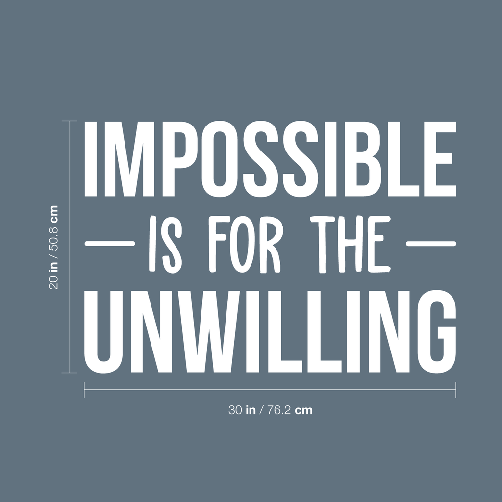 This awesome inspirational decal quote "Impossible Is For The Unwilling"; is the perfect touch for your home or coffee shop. Use it for your bedroom; living room; office or anywhere you want to bring some extra decoration. It's a vinyl sticker that is easy to put on any smooth and dry surface. Our modern designs don't just brighten up the room; but brighten up the day. Using top of the line vinyl across all of our production allows us to be the leaders in quality and design.
