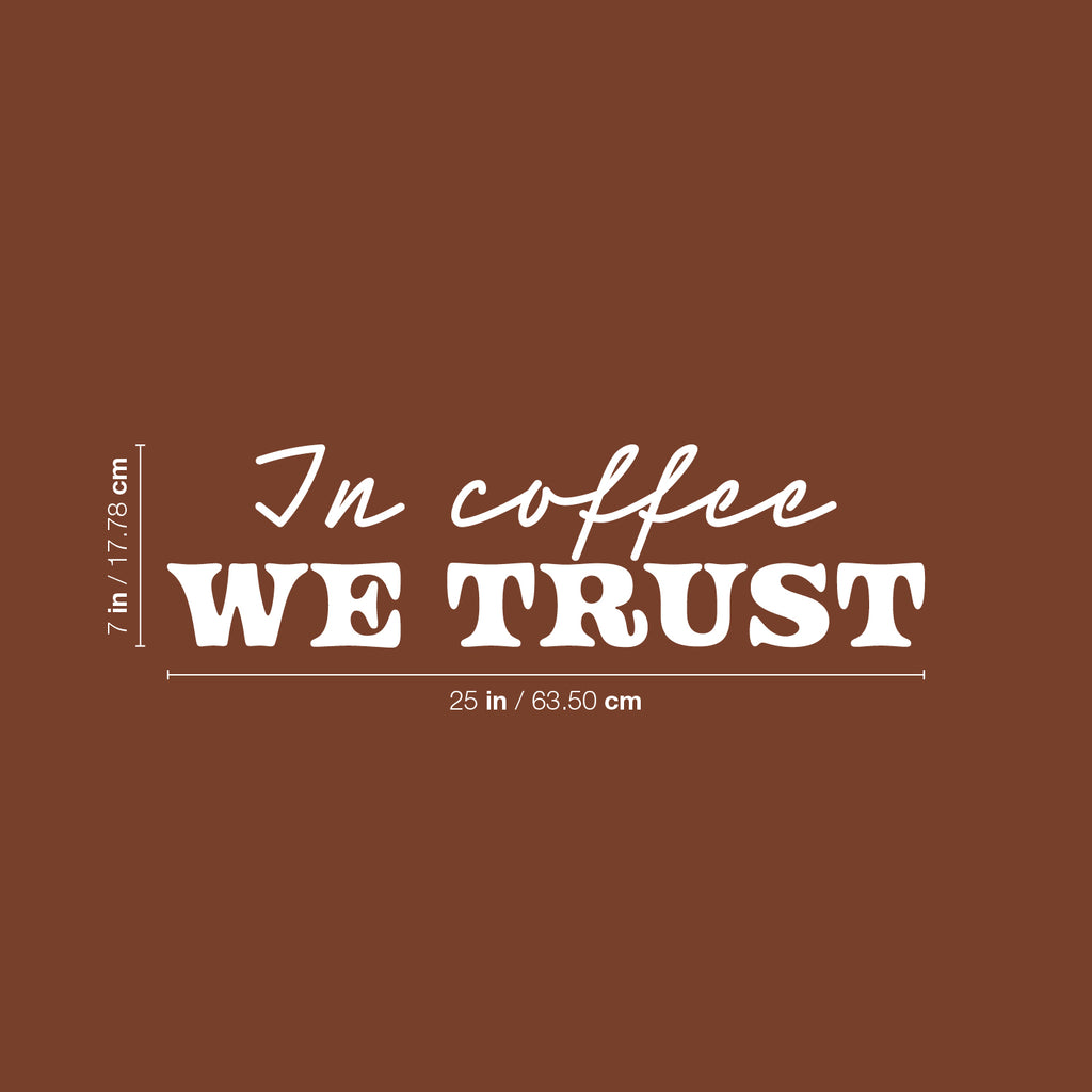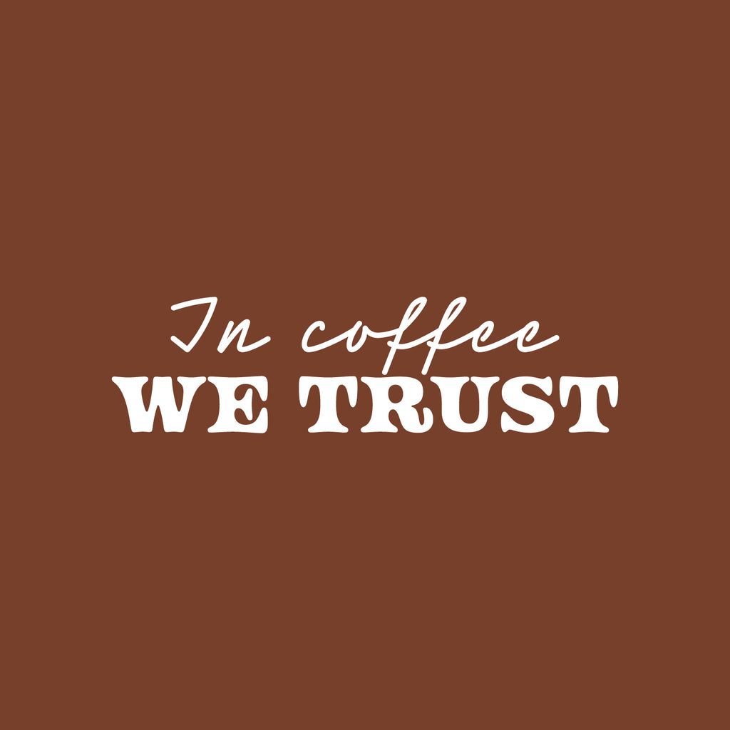 This awesome cute & fun decal quote "In Coffee We Trust"; is the perfect touch for your office or coffee shop. Use it for your dining room; restaurant; kitchen or anywhere you want to bring some extra fun decoration. It's a vinyl sticker that is easy to put on any smooth and dry surface. Our modern designs don't just brighten up the room; but brighten up the day. Using top of the line vinyl across all of our production allows us to be the leaders in quality and design.