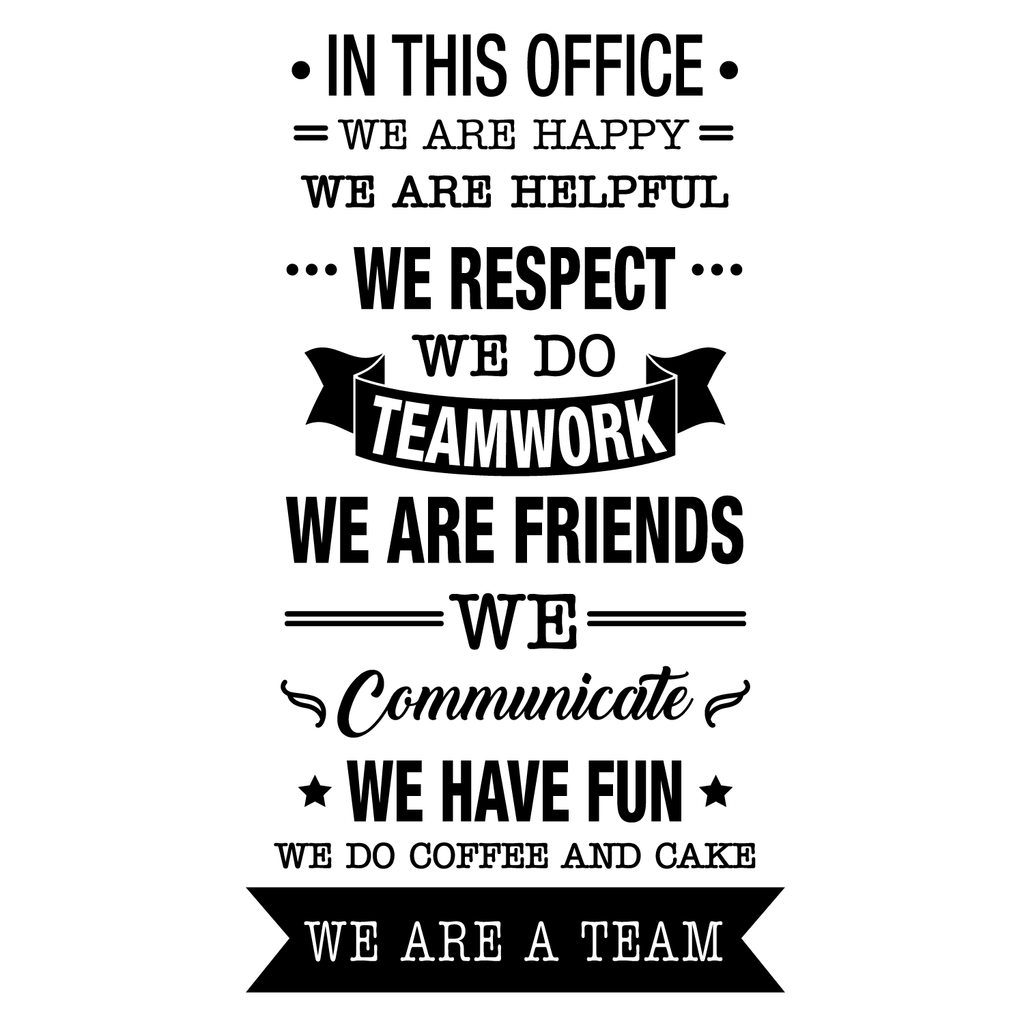 This awesome motivational decal quote "In This Office We Do Teamwork"; is the perfect touch for your home or work. Use it for your dorm room; meeting room or anywhere you want to bring some extra girly decoration. It's a vinyl sticker that is easy to put on any smooth and dry surface. Our modern designs don't just brighten up the room; but brighten up the day. Using top of the line vinyl across all of our production allows us to be the leaders in quality and design.