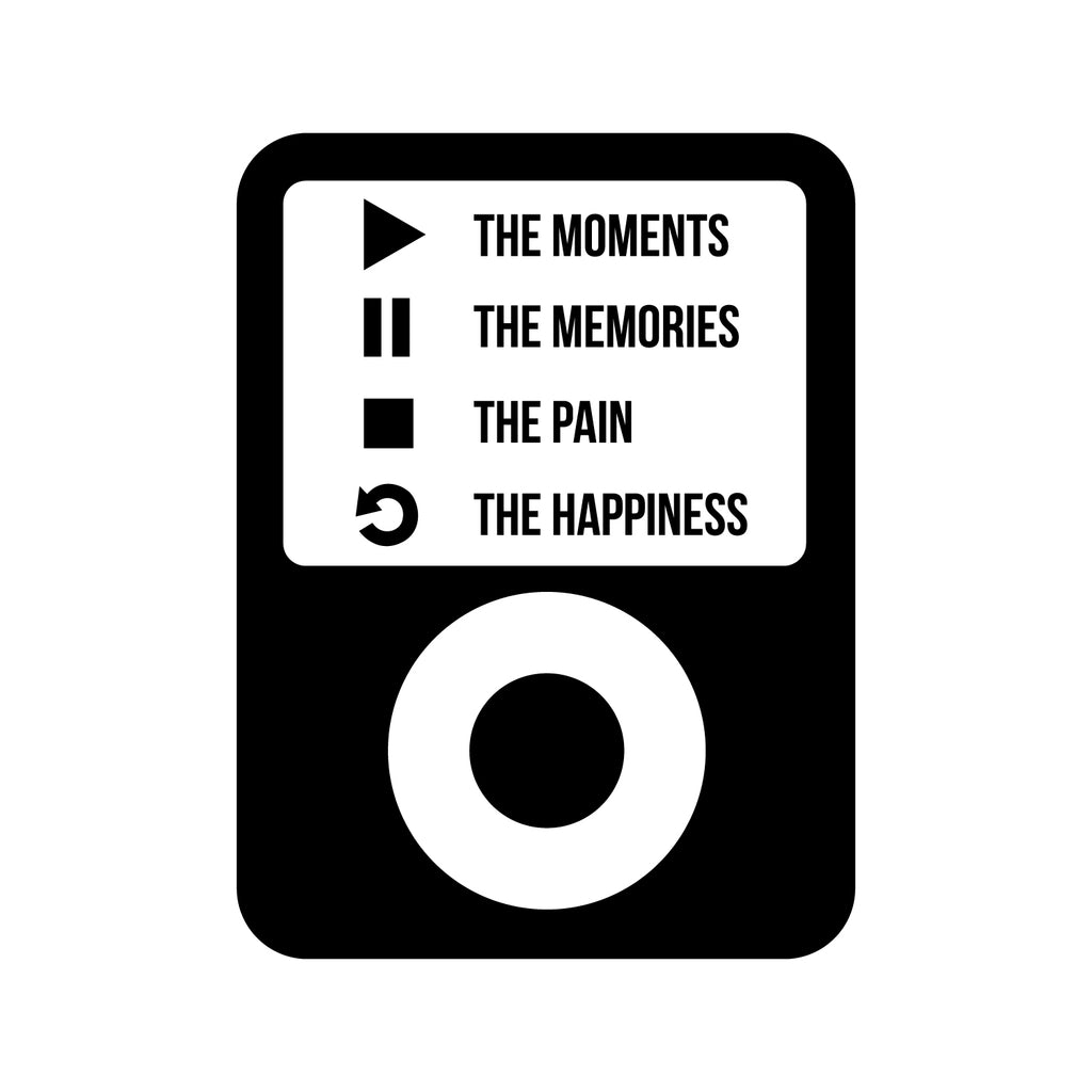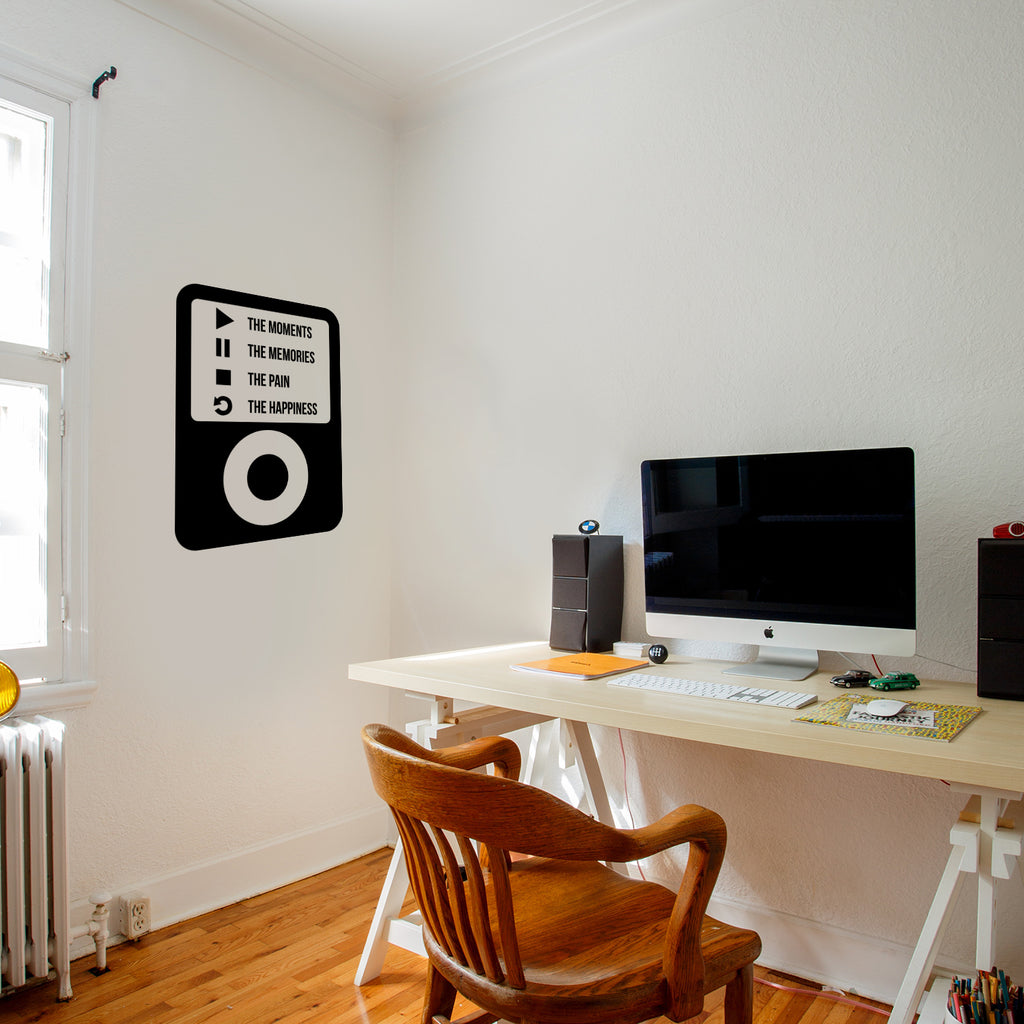 Vinyl Wall Art Decal - Ipod Design Play The Moments Pause The Memories Stop The Pain Replay The Happiness - Inspirational Home Bedroom Apartment Decor Living Room Office Work Quotes