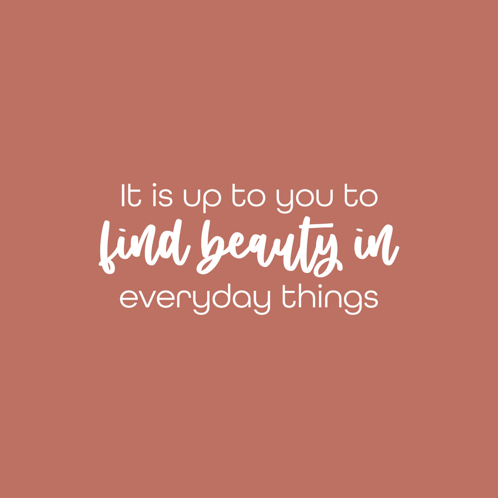 This awesome positive decal quote "It Is Up To You To Find Beauty In Everyday Things"; is the perfect touch for your school. Use it for your classroom; playroom or anywhere you want to bring some extra inspiring decoration. It's a vinyl sticker that is easy to put on any smooth and dry surface. Our modern designs don't just brighten up the room; but brighten up the day. Using top of the line vinyl across all of our production allows us to be the leaders in quality and design.