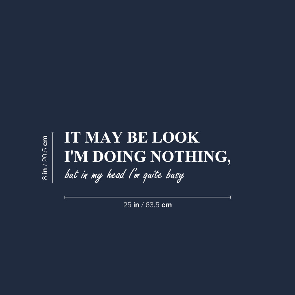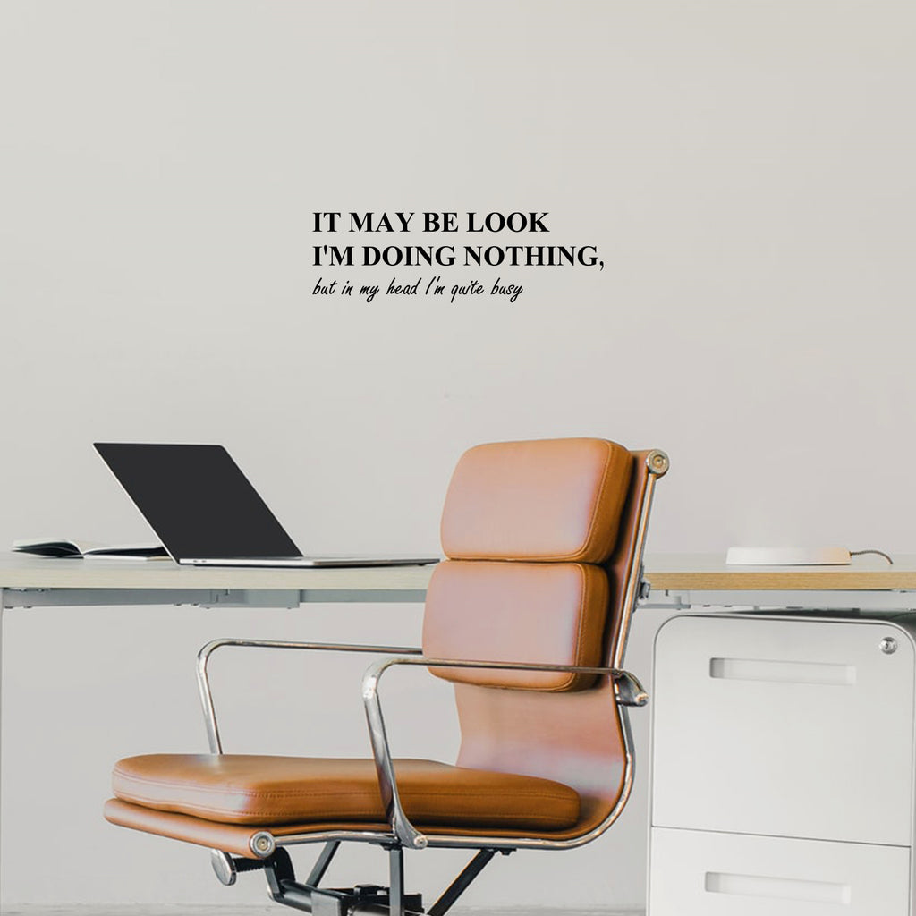 This awesome funny decal quote "It May Be Look I'm Doing Nothing"; is the perfect touch for your home or office. Use it for your closet; bedroom; living room or anywhere you want to bring some extra positive decoration. It's a vinyl sticker that is easy to put on any smooth and dry surface. Our modern designs don't just brighten up the room; but brighten up the day. Using top of the line vinyl across all of our production allows us to be the leaders in quality and design.