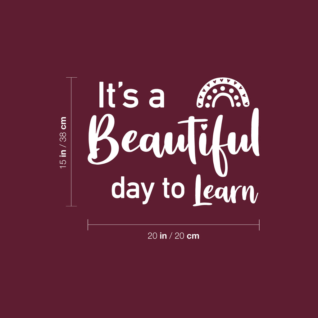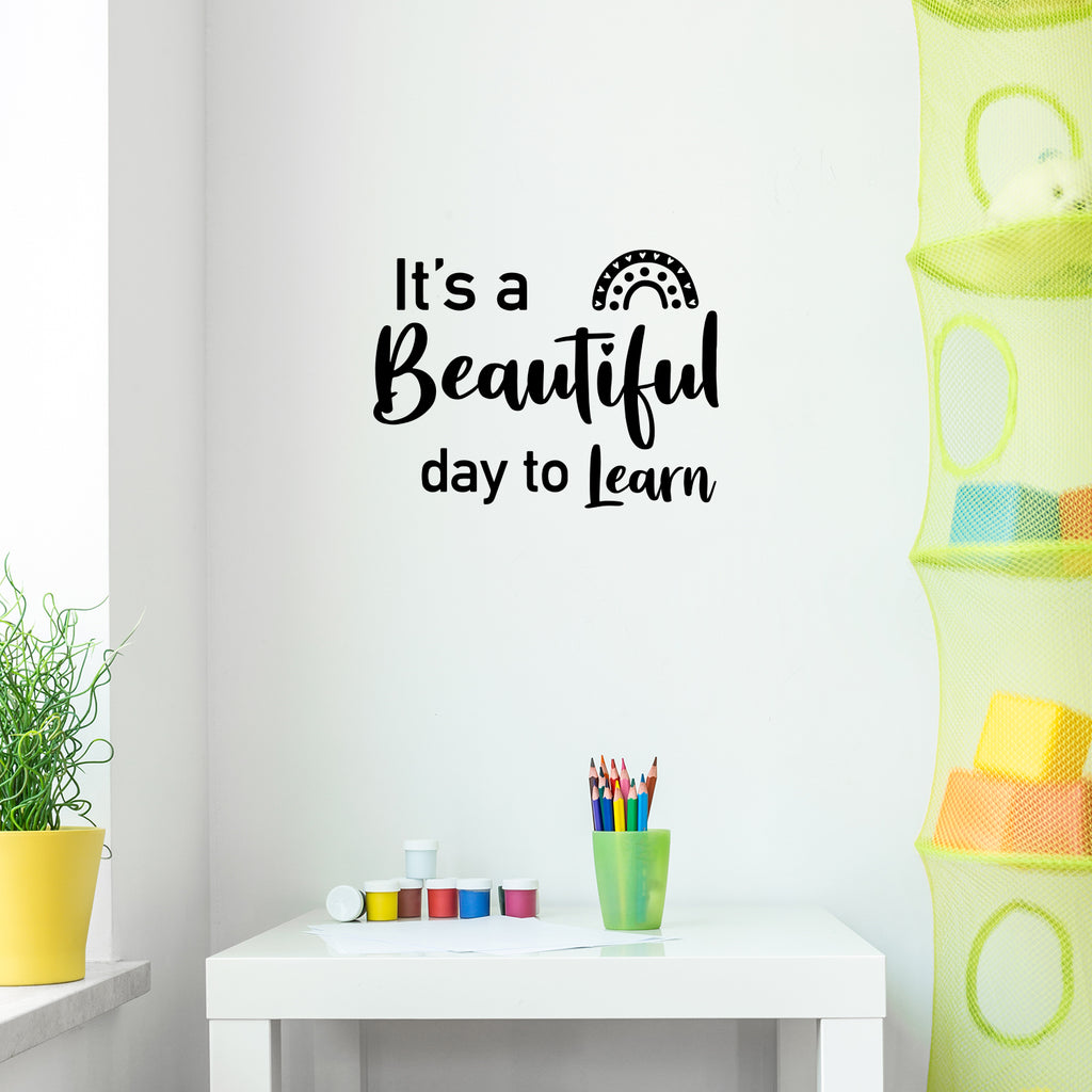 Vinyl Wall Art Decal - It's A Beautiful Day To Learn - Modern Inspirational Cute Rainbow Design Sticker For Children Bedroom Home Baby Nursery Daycare Kids Room Decor