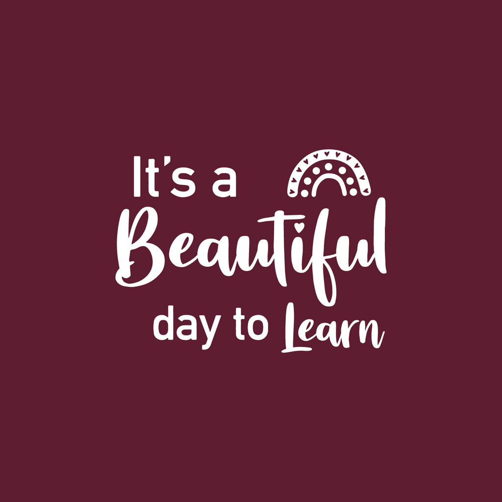This cute decal quote "It's A Beautiful Day To Learn" is the perfect touch for your home. Use it for your nursery; playroom; kids room or anywhere you want to bring some extra cute decoration. It's a vinyl sticker that is easy to put on any smooth and dry surface. Our modern designs don't just brighten up the room; but brighten up the day. Using top of the line vinyl across all of our production allows us to be the leaders in quality and design.